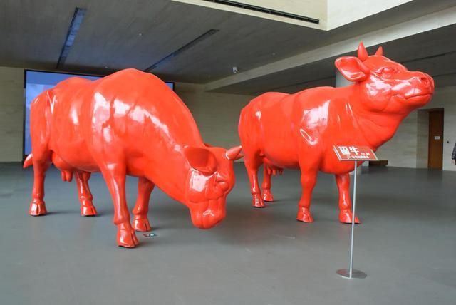 ↑在天津美术馆展出的雕塑作品《福牛》。(新华社记者 周润健 摄)
