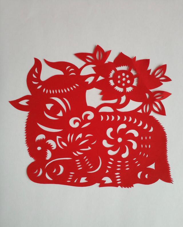 ↑天津市河东区郝记剪刻纸花传统手工技艺传承人尚君创作的生肖牛作品。(尚君本人提供)