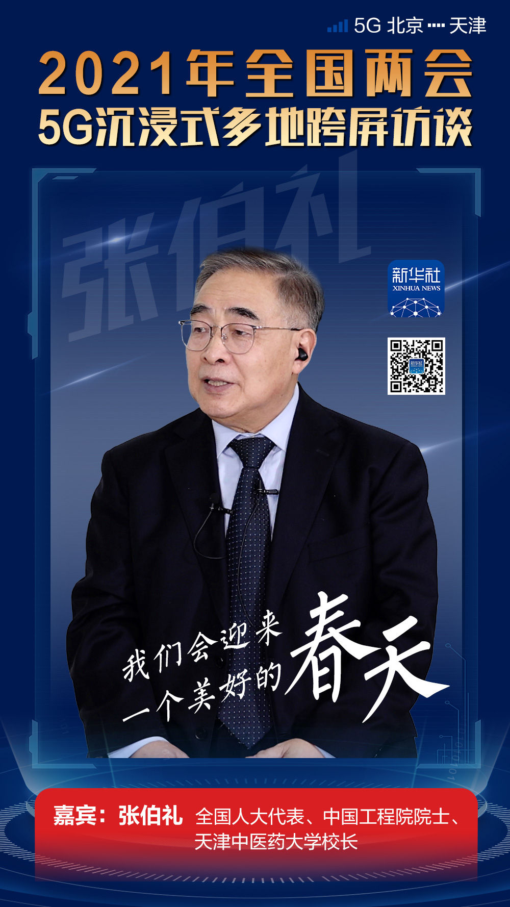 在访谈的最后,张伯礼对本次访谈形式感到很惊奇:“现在只有想不到的,没有做不到的。我今天身临其境,感觉怎么这么新奇,感到震撼。高科技的发展太快了,希望大家把身体调理好,享受我们的新生活!”