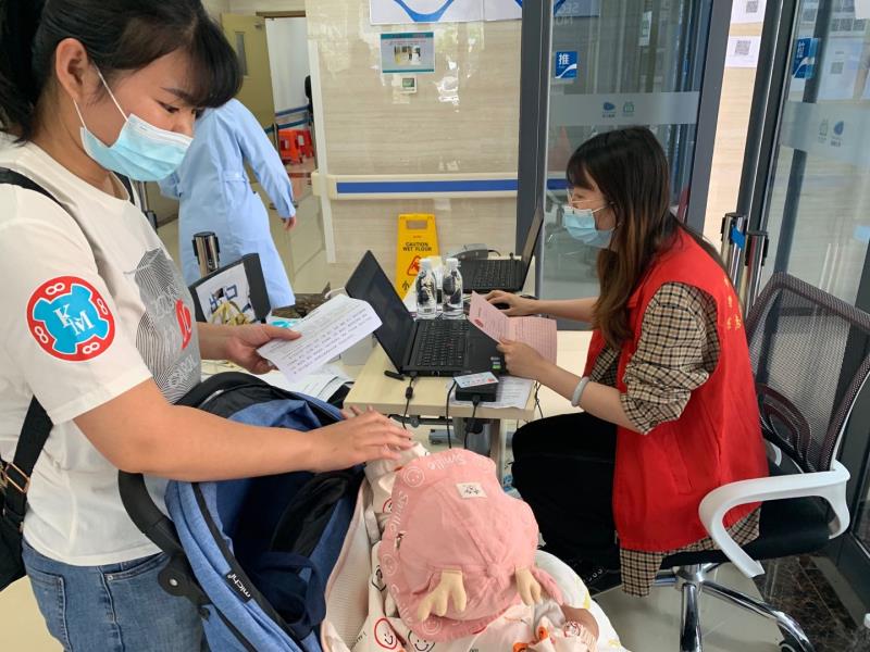 由于接种对象是未成年人,多由家长陪同,现场人员较多,网格员们一直忙着流程引导、维持秩序、填写表格、身份登记、指导居民等待留观等。遇到不会操作的居民,网格员更是手把手教他们现场操作。有的家长带着年纪尚幼的孩子过来,为帮助他们尽快完成接种,网格员当起了“临时保育员”,哄娃、工作两不误,受到了现场家长的一致好评。