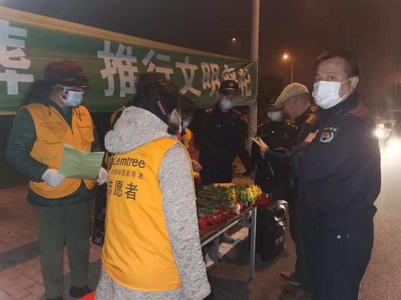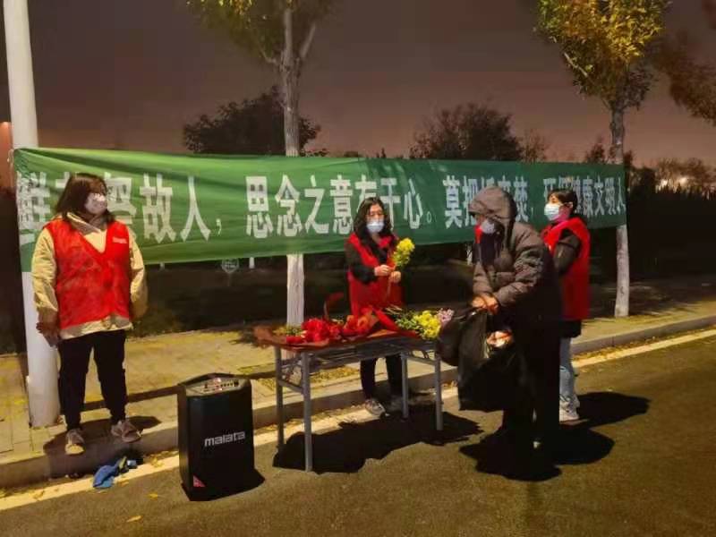 另外,针对老北塘还迁区域居民年龄普遍较大对文明祭扫抵触情绪较大的情况,海泽苑、海阔苑、杨家场、文化宫社区还联合开展“鲜花换烧纸,文明祭故人”活动,社区志愿者和执法大队人员一同利用广播喇叭上街宣传《天津市文明行为促进条例》,耐心讲解烧纸钱的危害,倡导文明健康生活方式,用冥币纸钱换鲜花,更环保更平安的祭奠故人,提高群众对文明祭扫的自觉性。