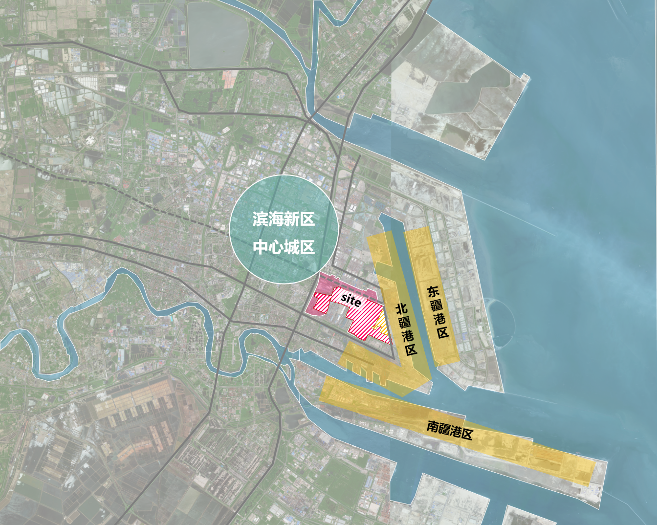 天津港保税区因港而生、依港而兴,是我国第二个、北方首个保税区,始终站在改革开放的前沿。本次实施城市更新的海港区域是天津港保税区的起步区和发源地,其地处天津市滨海新区核心区。东侧紧邻天津港北疆港区,西侧紧邻海滨高速,距离天津主城区约38公里,位于京津城市带和环渤海城市带的交汇点,是连接天津港和滨海新区主城的产业黄金区位。