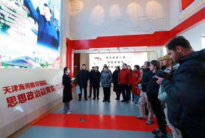 近日,天津外国语大学组织50余名中外师生走进天津海河教育园区思想政治教育实践基地参观学习。
