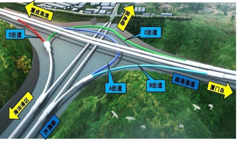 厦门海沧疏港通道地下互通式立体交叉隧道示意图