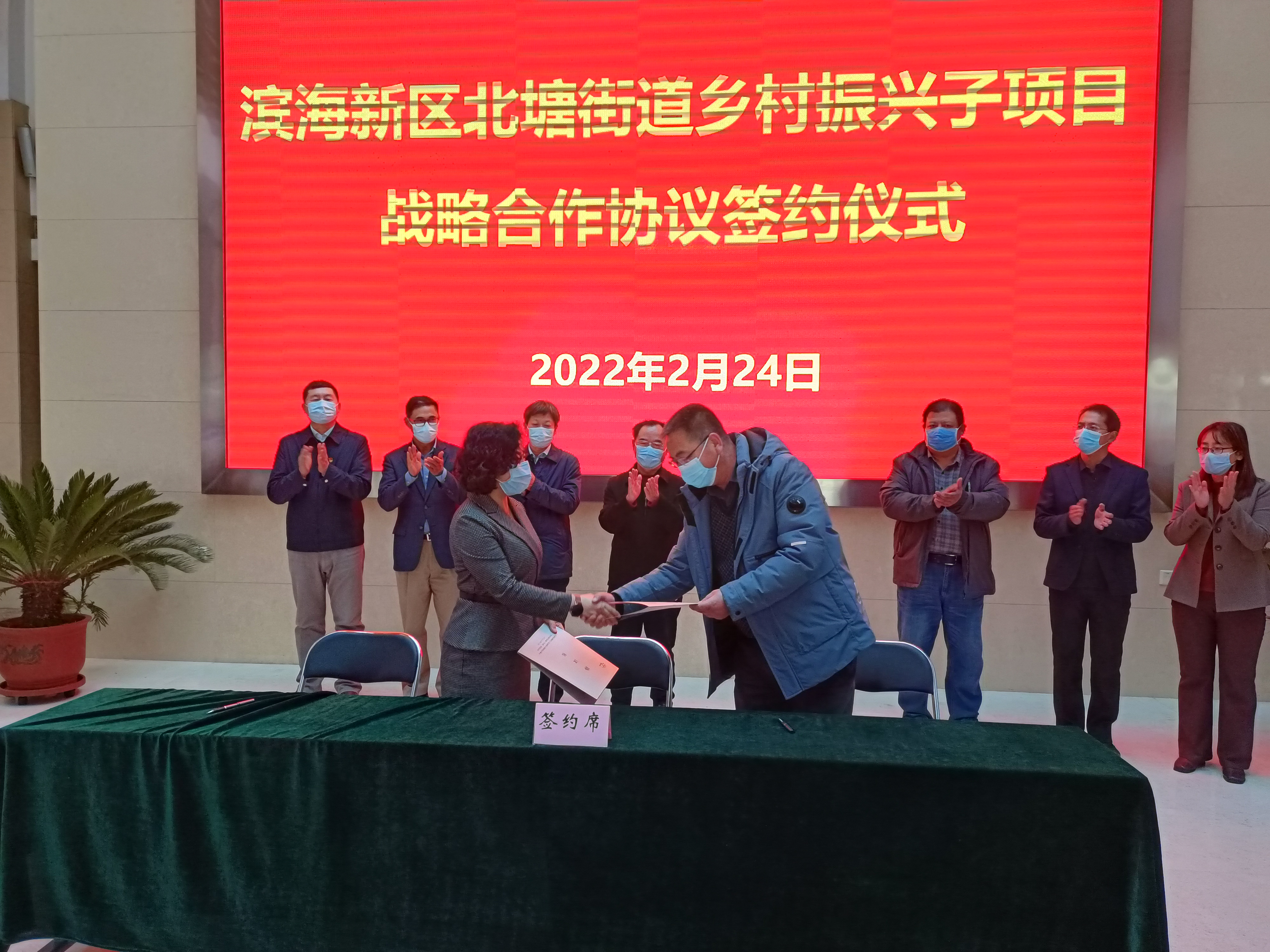 津滨网讯(记者 张玮 摄影报道)2月24日下午,北塘街道与首农清河农场(天津)有限公司、天津市种子行业协会、天津天隆科技股份有限公司签署共同推动乡村振兴战略合作协议。此次签约不仅标志着各方共同合作推动北塘乡村振兴工作的良好开局,还将有力促进北塘高质高效农业的健康发展。