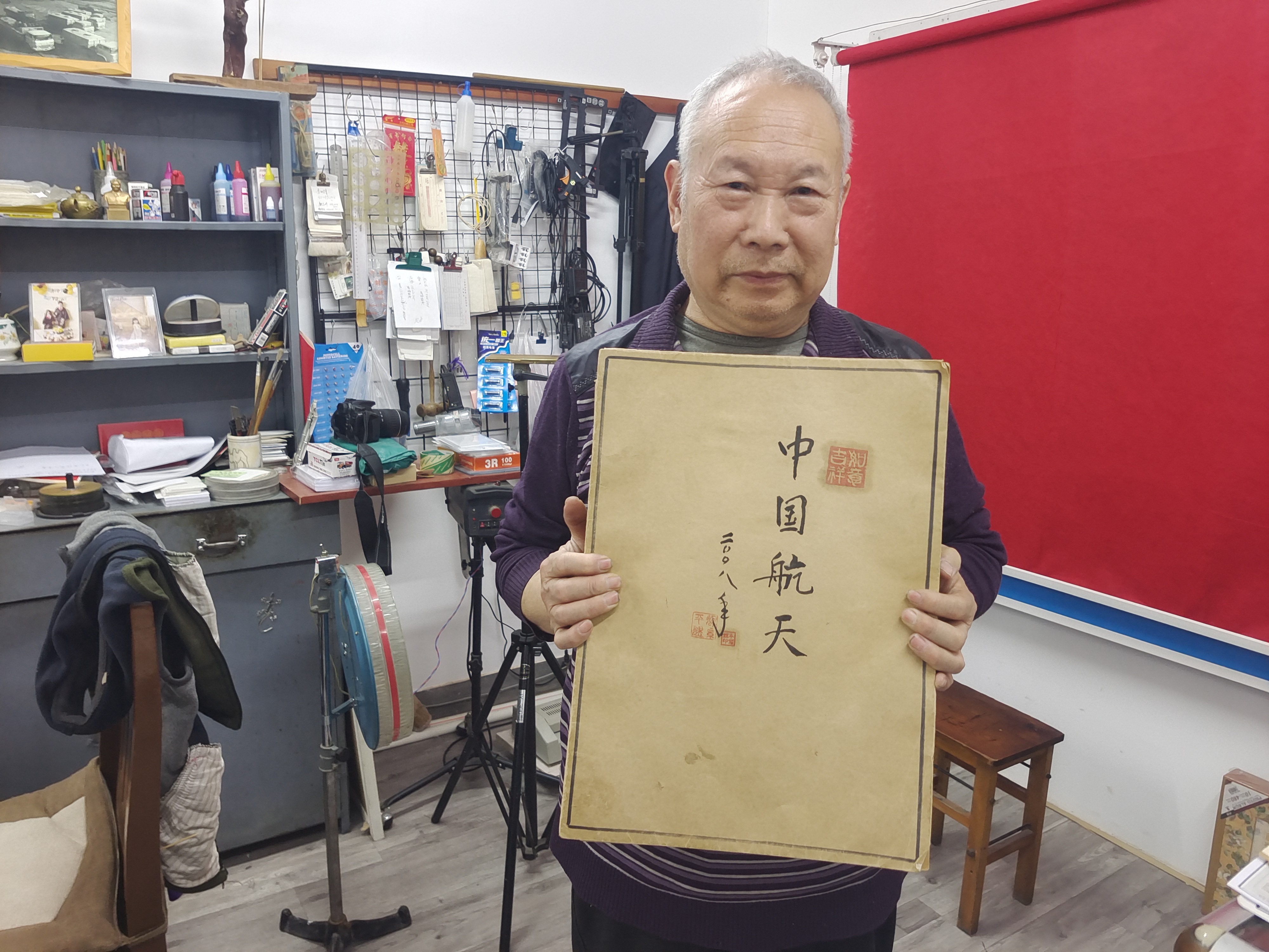 在平耀辉老人的工作室,他捧着一本自己收集和整理的航天图册,封面上面用毛笔写着“中国航天”。图册里面都是他用纸盒剪贴、绘制的航天器图片,每翻开一页,老人就能讲出一个关于航天器的小故事:“这是东方红一号,1970年4月24日发射了我国第一颗人造地球卫星,自此4月24日就定为我国的航天日。那时我还是个小孩,非常激动,当时没有电视机,每天守着收音机听着发射进程。第一颗卫星发射成功对当时的工人、农民的鼓舞太大了。”