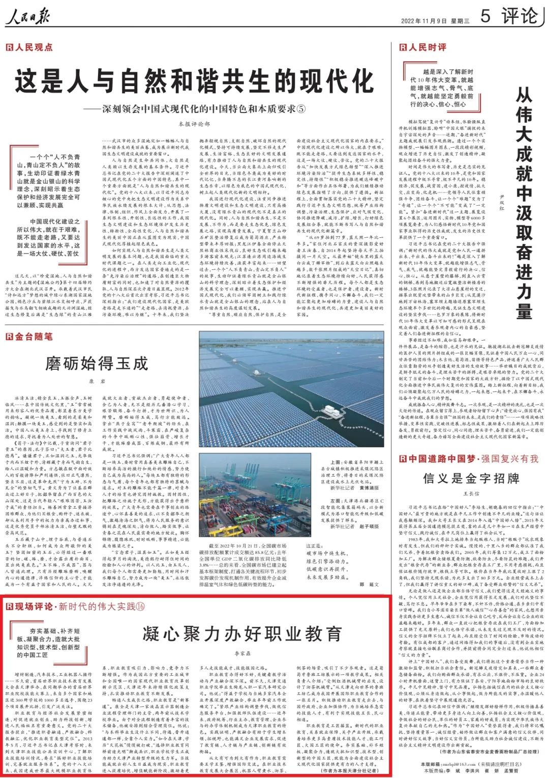11月9日,人民日报客户端刊发图文报道《人民日报评论关注天津:凝心聚力办好职业教育》。