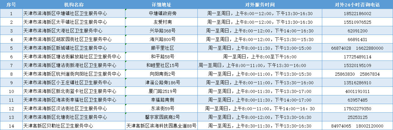 为了更好地满足全区居民的输液需求,我区部分社区卫生服务中心可以提供输液服务啦!如果有输液需求的居民,建议就近到以下社区卫生服务中心就诊,减少到人员密集的二、三级医疗机构就医,避免造成交叉感染。现将滨海新区可提供输液服务的社区卫生服务中心进行公布,供广大居民就医参考使用。