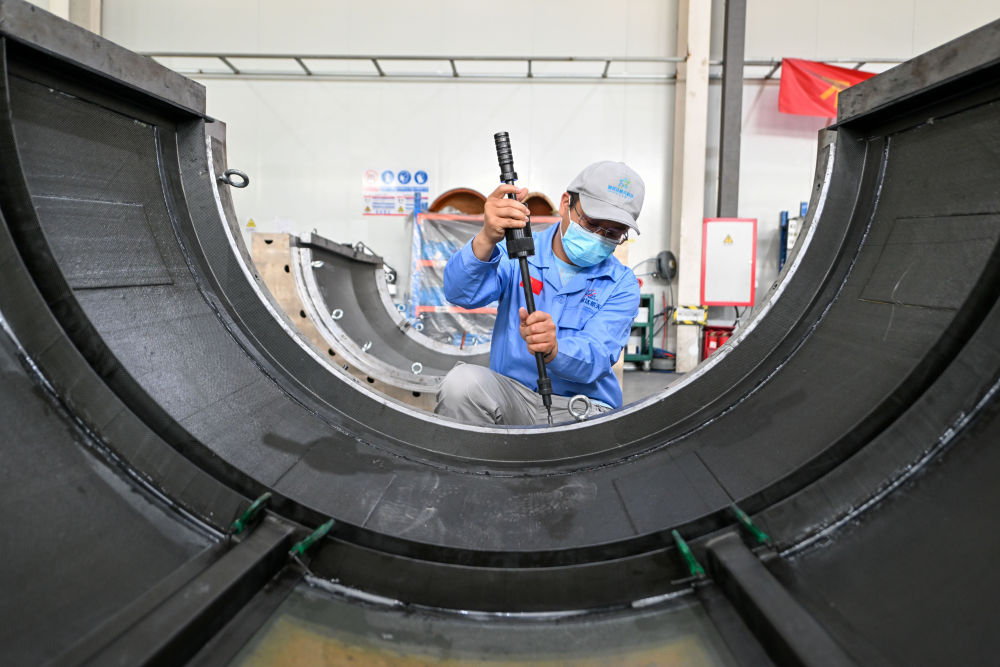 5月11日,在中航装甲科技有限公司,工人操作设备加工产品。