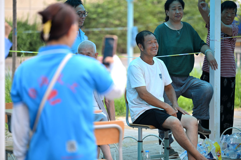 新华社天津8月16日电(记者尹思源、刘惟真)“这是心的呼唤,这是爱的奉献……”天津市静海区第六中学安置点内,台头镇中二堡村村民杜德路的歌声回荡在宿舍楼间。不远处,孩子们在结伴跳绳,不少村民坐在椅子上,手里的蒲扇轻轻摇动,扇起阵阵微风。