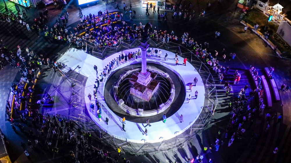 本次走秀活动以炫酷的灯光舞美及音乐呈现,将音乐、科技、艺术完美融合,激发每个角落的时尚基因。围绕马可波罗广场设计的环形T台气势恢宏,360度呈现服装细节,置身秀场中堪比沉浸式展览,吸引了大批游客和市民观赏,现场人气爆棚。