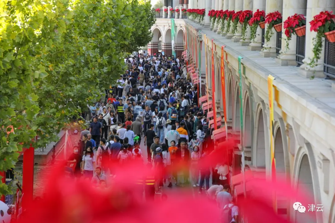 假期中段,火热局面持续。假期前四天,津湾广场游客超23万人次;“津门故里”古文化街推出多种活动,5天游客超65万;就连早餐一条街——西北角,每天也有大约10万游客慕名而来。