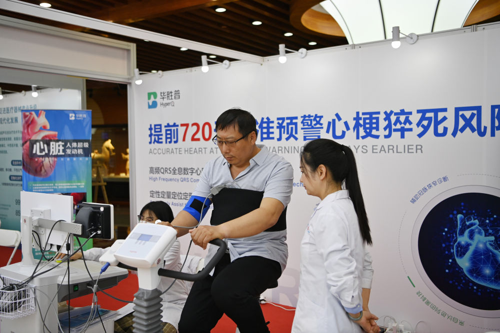 5月9日,与会者在数字医疗创新发展平行会议上体验医疗设备。 新华社记者 李然 摄