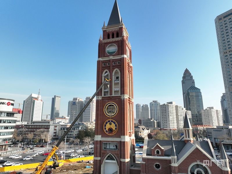 即将建成的五大道公园钟楼(央广网记者 周思杨 摄)