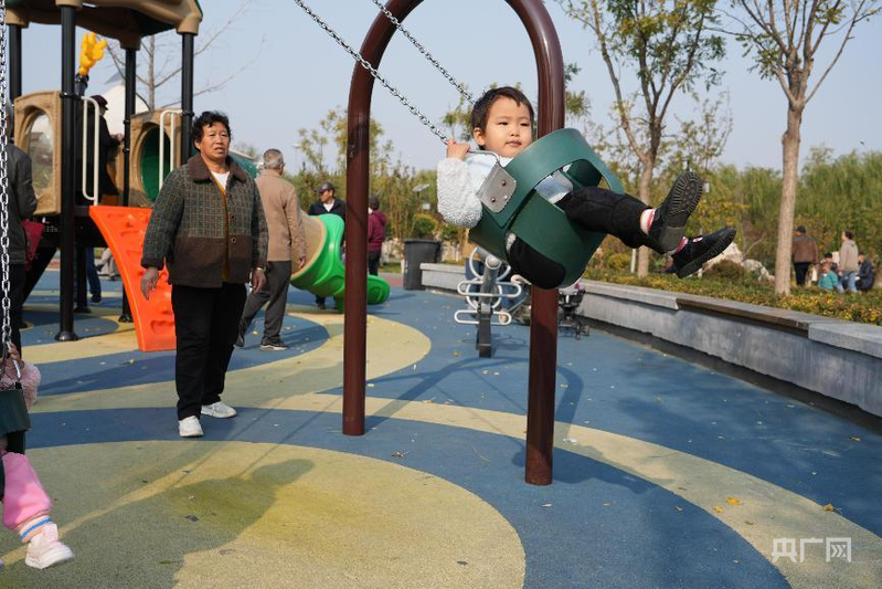 市民与孩子在南运河文化公园游玩(央广网记者 周思杨 摄)
