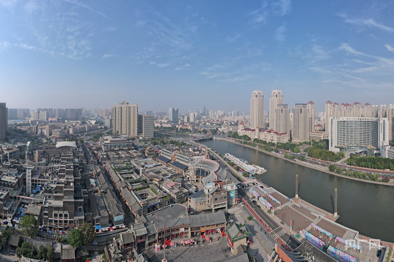 古文化街与高楼大厦隔海河相望,代表着津城古韵与现代(央广网记者 周思杨 摄)