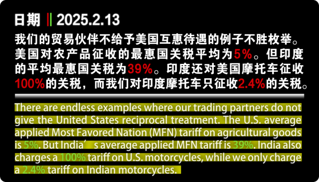 此前,特朗普在接受媒体采访时说的是“报复关税”(retribution tariff),而不是“对等关税”(reciprocal tariff)。