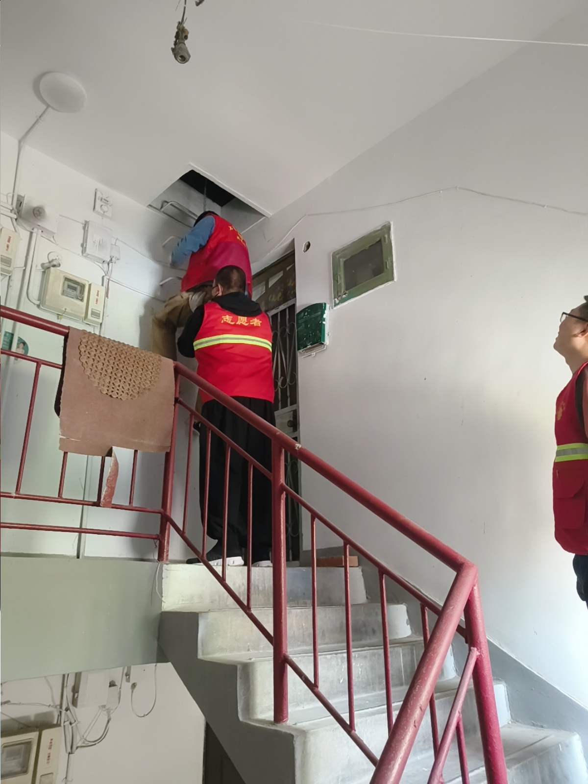 面对即将到来的大风橙色预警,志愿服务队迅速行动,主动攀上楼顶检查,确认热水器支架加固情况,及时化解了险情。