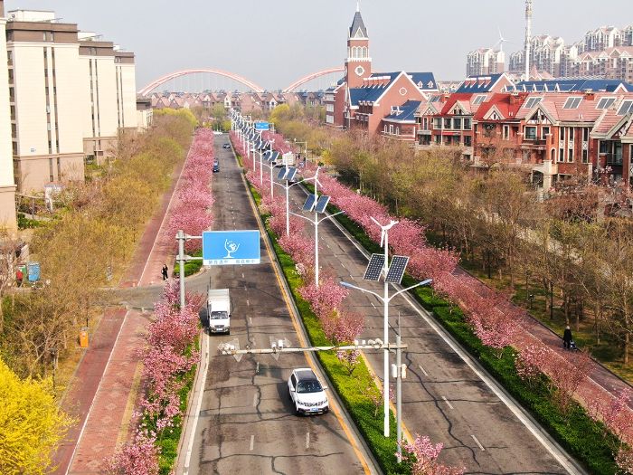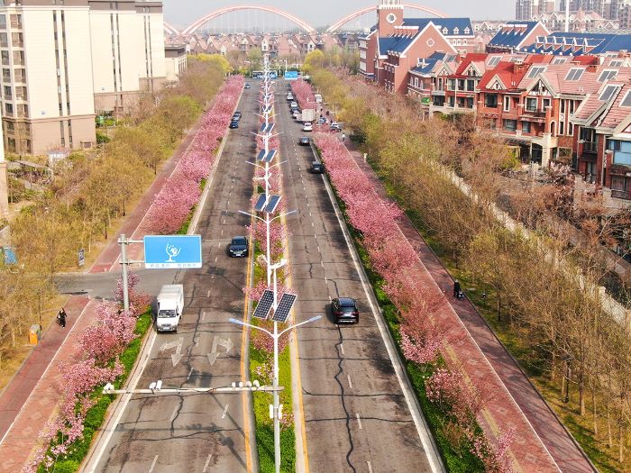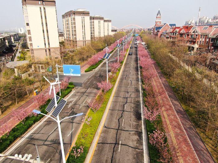 津滨网讯(记者 贾磊 摄影报道)四月,春意正浓,生态城的“樱花大道”迎来了又一年的烂漫时刻。4月11日,记者在中新天津生态城“樱花大道”和睦路两侧惊喜地发现,晚樱进入了盛放期。