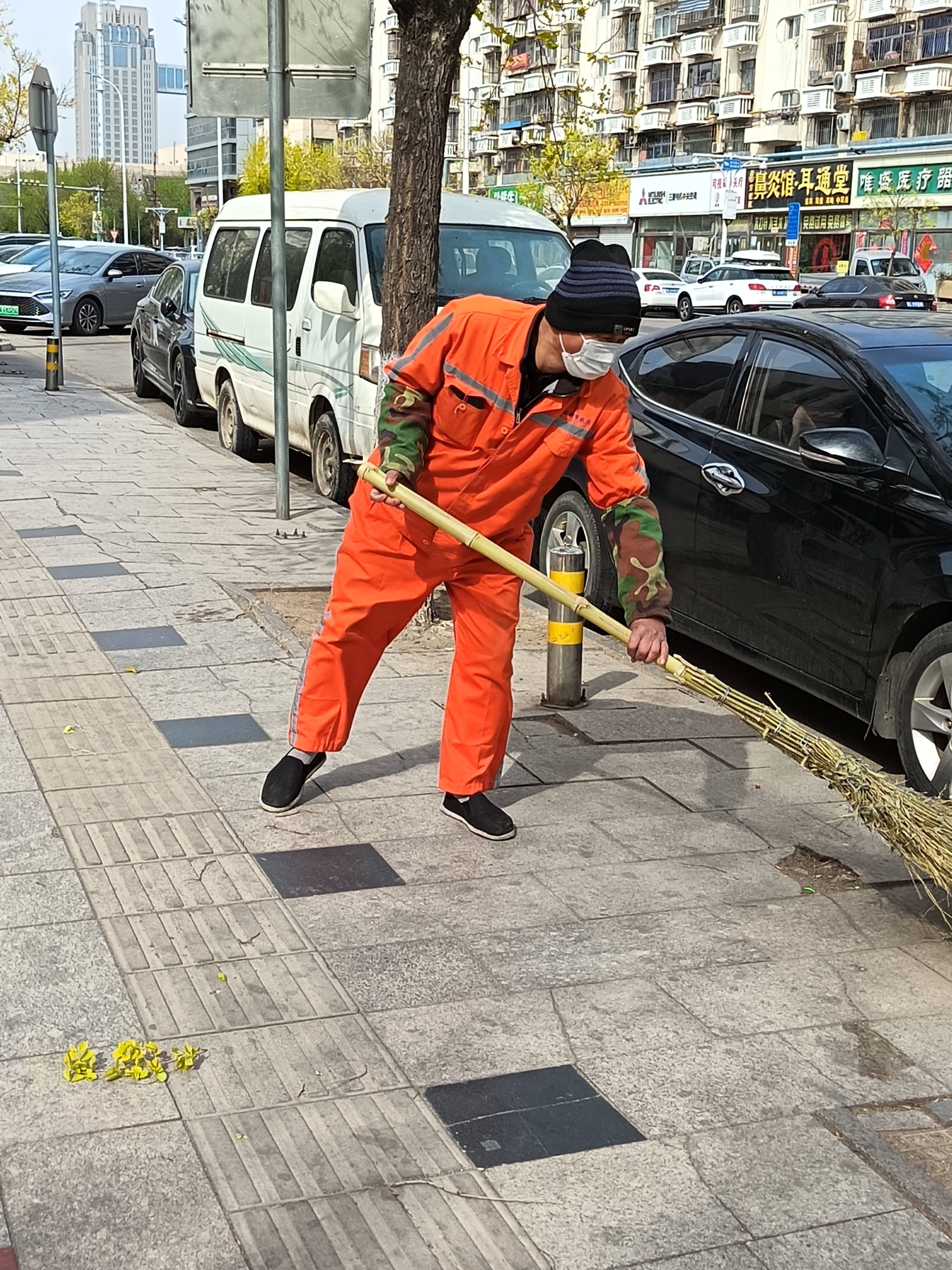 今年54岁的宋师傅老家德州乐陵,在新区从事环卫工作已有十个年头。此次大风天气,他从早上六点就到岗值守,一直不停清扫落叶、碎枝等杂物,风很大,他手中的笤帚一直在街头挥动。