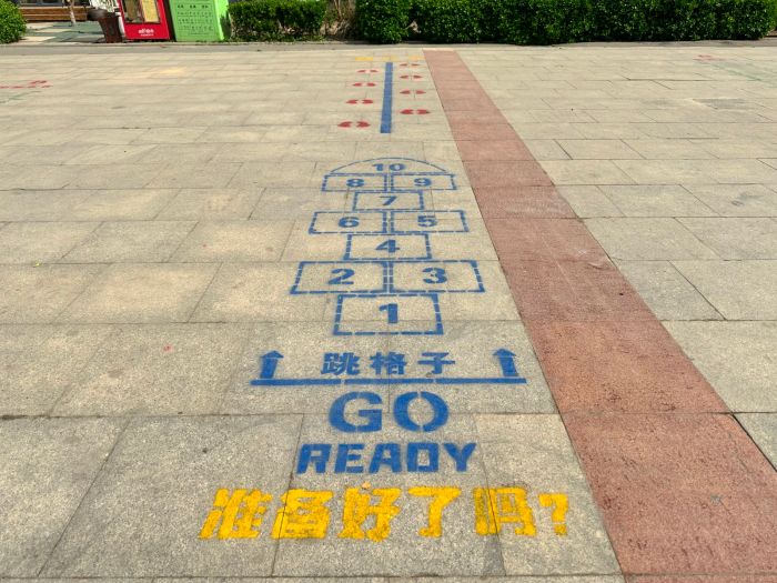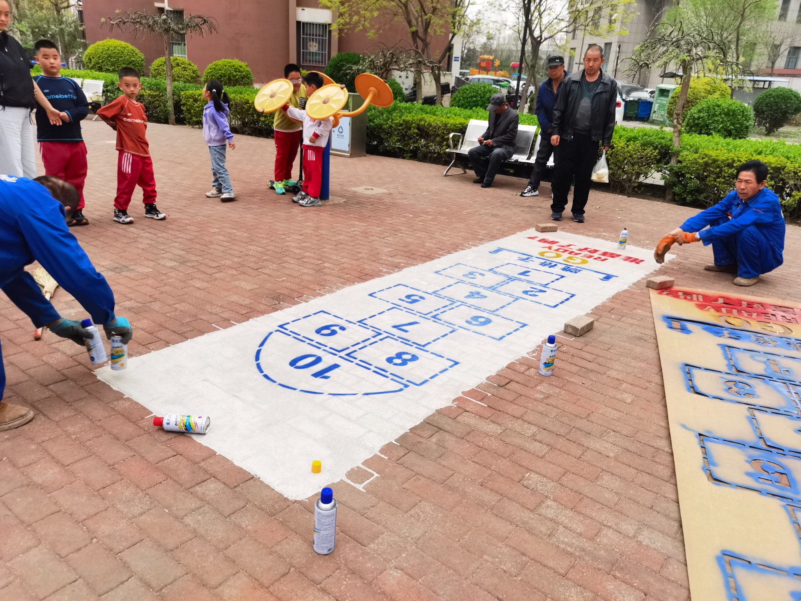 跳方格作为一项传统的儿童游戏,既能唤起成年人的童年回忆,又能为孩子们提供一个锻炼身体、增进交流的机会。活动前期,社区工作人员与物业管理人员进行了详细的筹备工作,他们根据广场的布局购置了多种模板,又用醒目的颜料将跳房游戏的图案喷绘在小区的空地上。