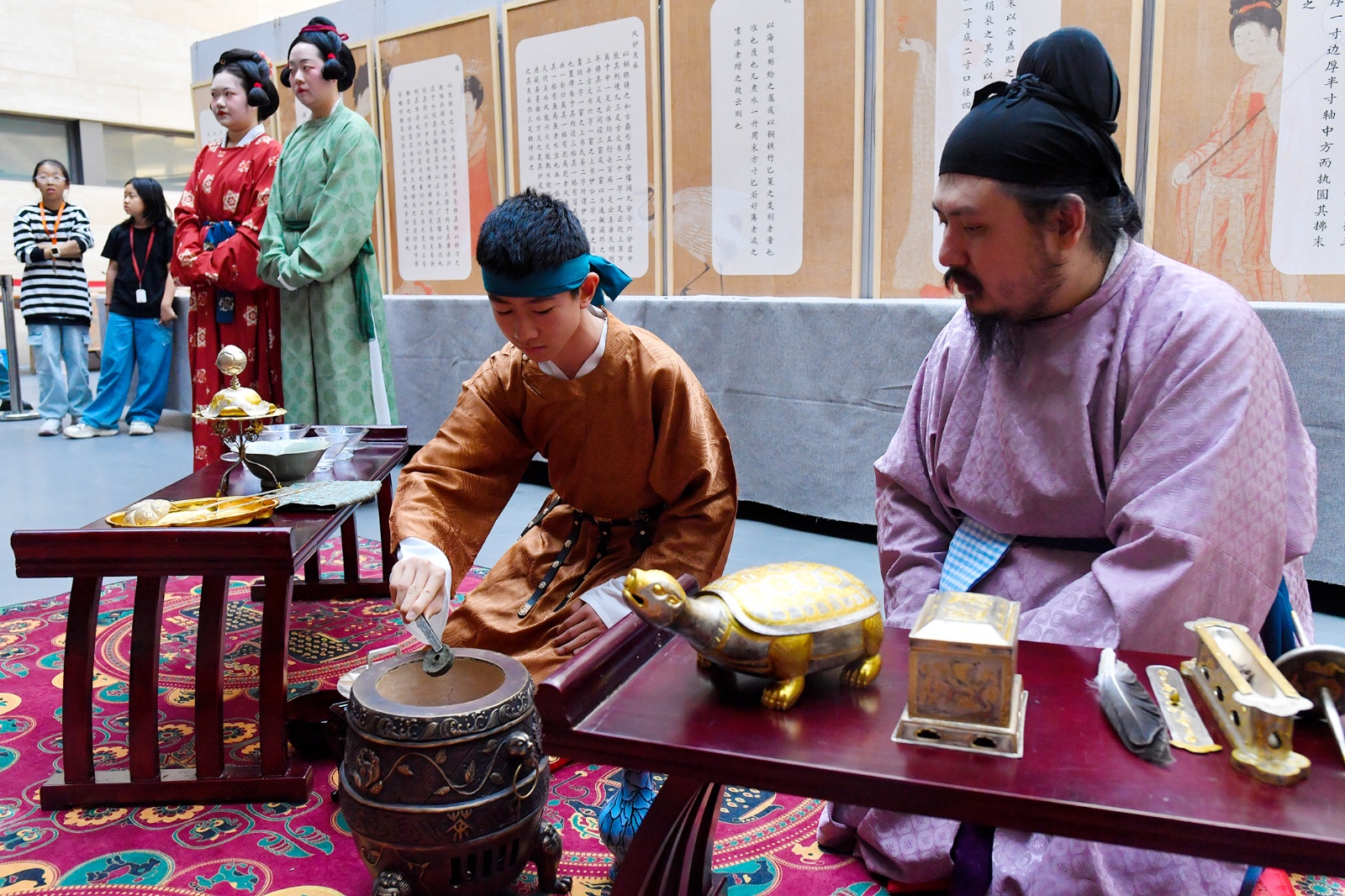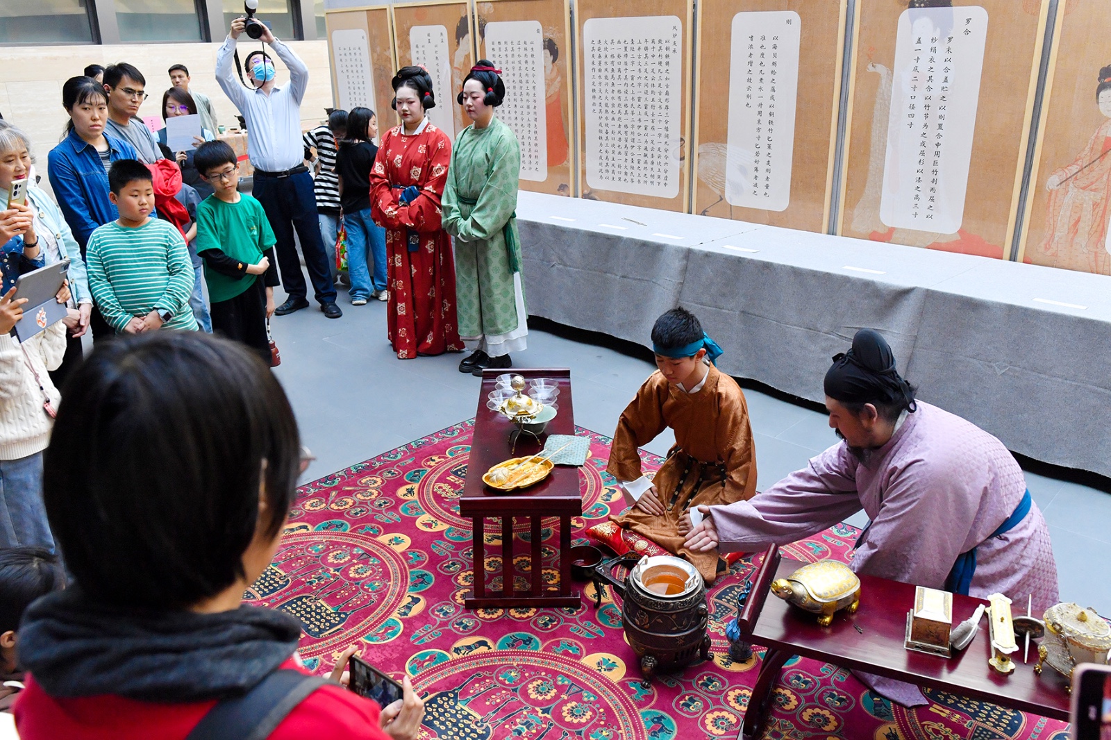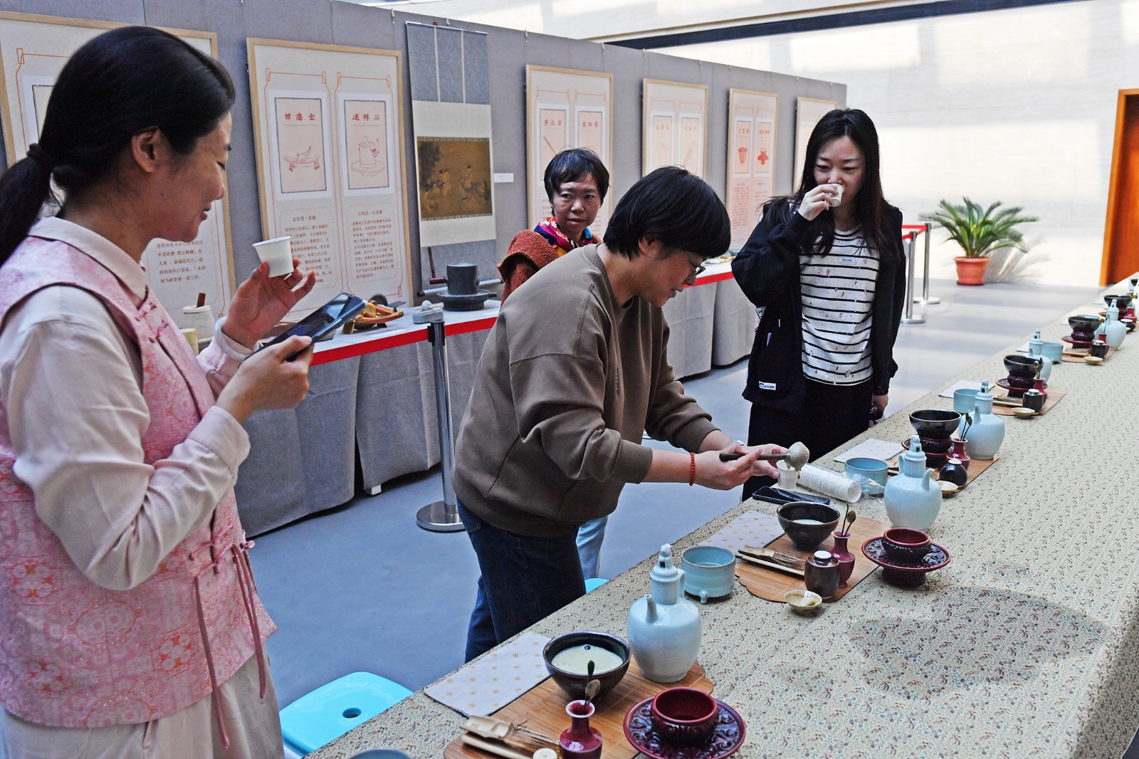 本次展览亮点纷呈,以唐宋茶器复刻、明清茶书典籍、“一带一路”茶文物为脉络,通过60余件历代茶器复刻珍品、50余部海内外茶文化典籍、“唐宫茶影”主题茶艺表演、古法茶艺体验工坊,全景呈现中国茶从煎茶、点茶到瀹茶的技艺革新,追溯茶叶从华夏大地走向世界舞台的壮阔历程。此外,茶艺讲师还为大家详细解读每一件展品背后的故事,茶艺爱好者不仅可以现场品鉴到各种茶,还可以在老师的指导下亲身体验,使传统文化真正“活”了起来。