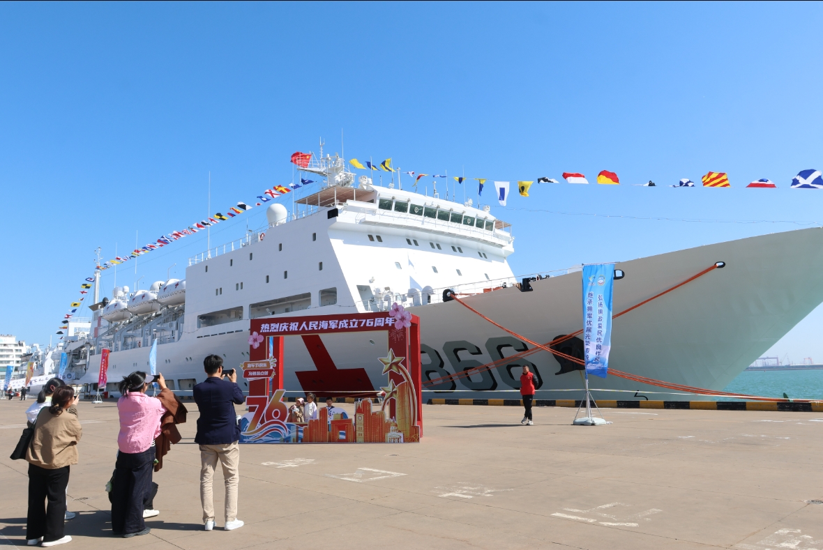 退役军人则对舰艇的“硬核实力”格外关注。海军退役老兵刘砚清仰头凝视着直升机起降平台,摩挲着防滑纹路的甲板喃喃道:“ 这些年,我们国家的海军发展太快了,‘和平方舟’就是最好的证明。它漂洋过海,为各国人民送去健康和希望,展现了我们中国军人的风采,也彰显了大国的风范。作为一名退役军人,我感到无比骄傲和自豪!”他身旁的老战友们不住点头,目光里满是欣慰与自豪。