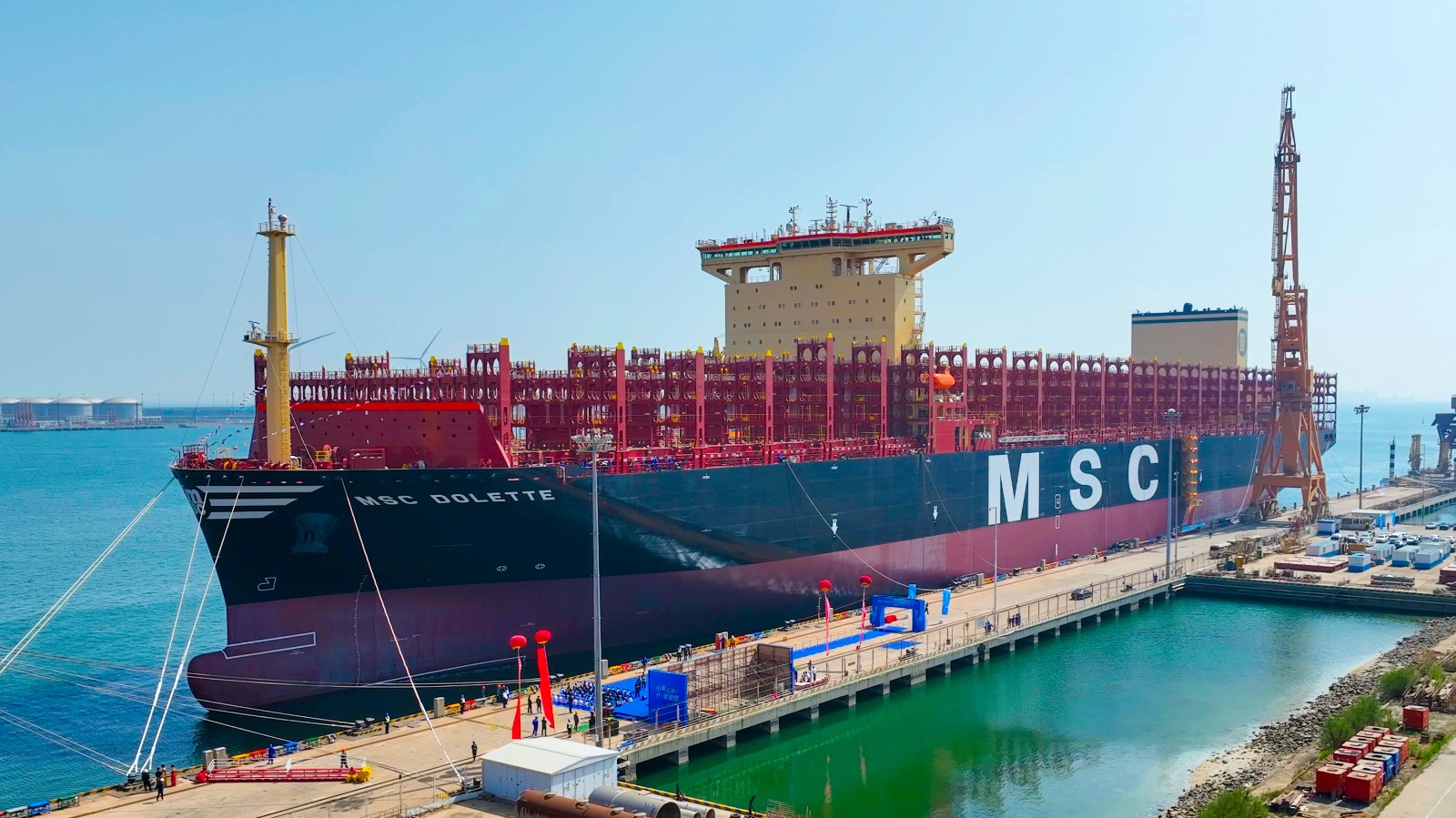 津滨网讯(记者 单毅 张倩 王鼎鑫)4月23日,中船集团大连造船中船天津为MSC地中海航运建造的双燃料16000TEU集装箱船12号船提前年度计划38天,提前合同期99天命名交付。该船全长366米,型宽51米,型深30.2米,可装载16196个标准集装箱,其中冷藏集装箱1800个,具有综合能耗低、舱型兼容广、载货能力强、航线匹配佳等显著亮点。
