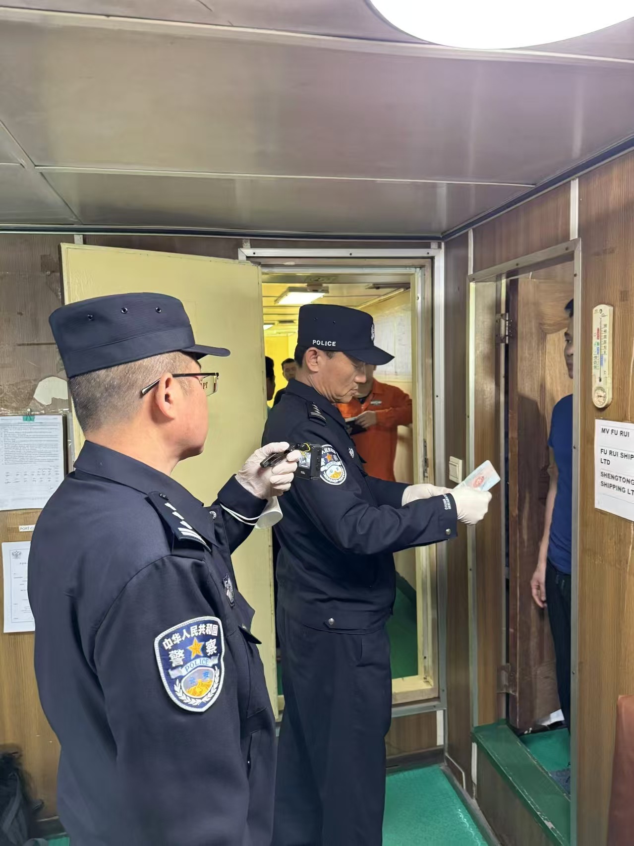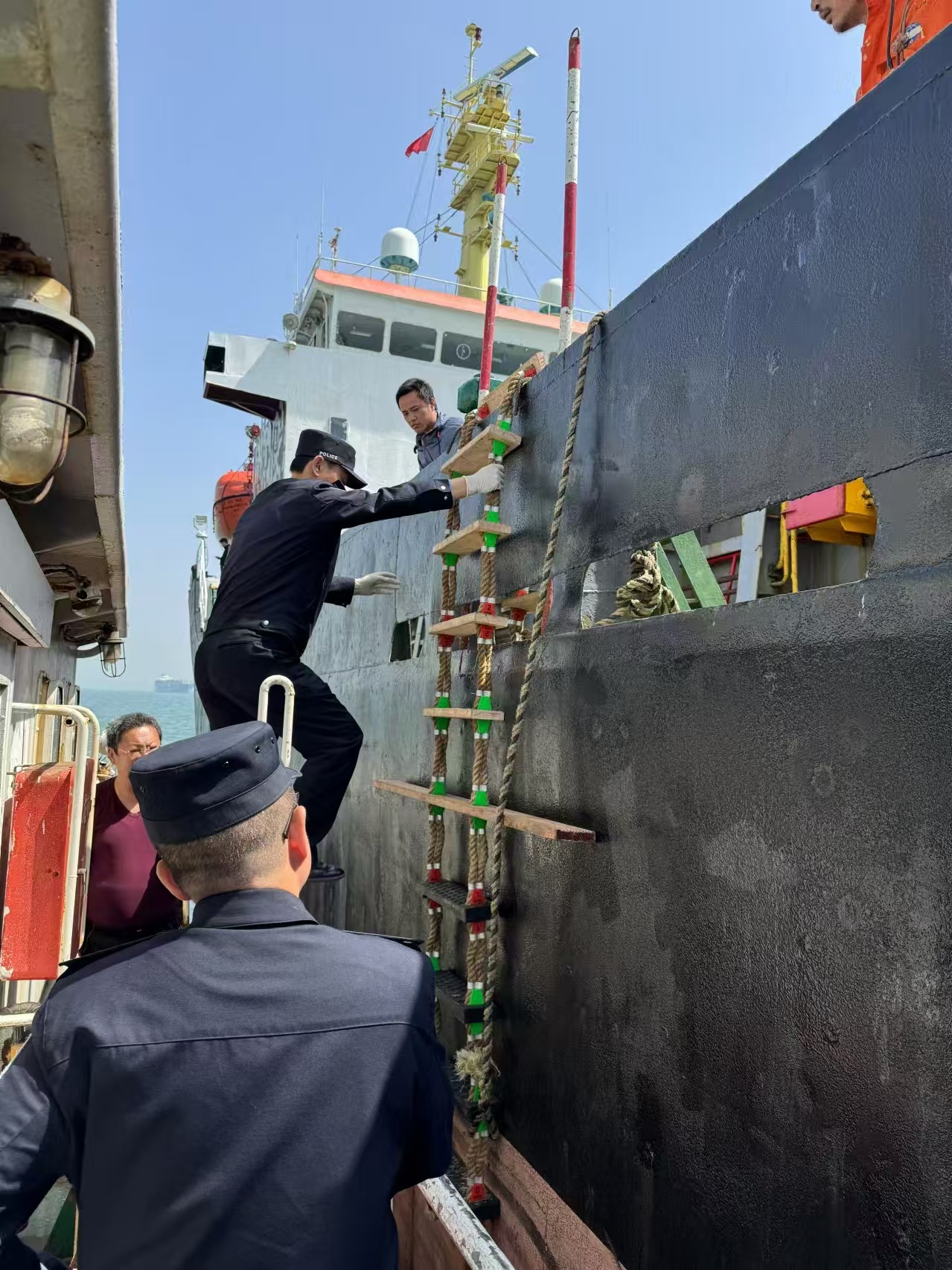 “我们针对特殊需求建立‘一船一策’服务机制,大幅压缩国际航行船舶检查程序。”天津边检总站天津边检站执勤一队教导员刘永伟表示,下一步,天津边检站将持续优化海上移动查验模式,为优化口岸营商环境提供边检方案。(天津边检站供图)