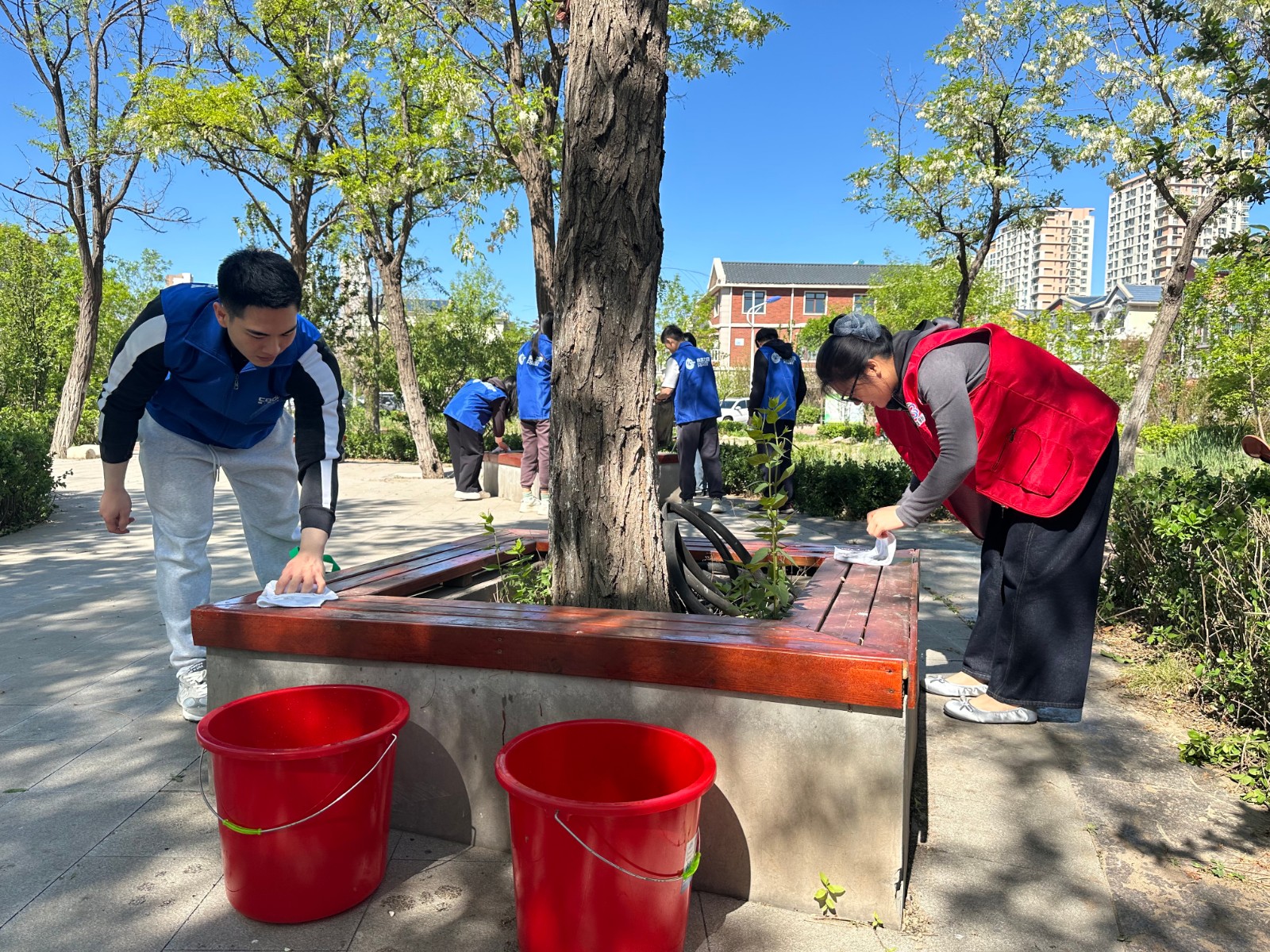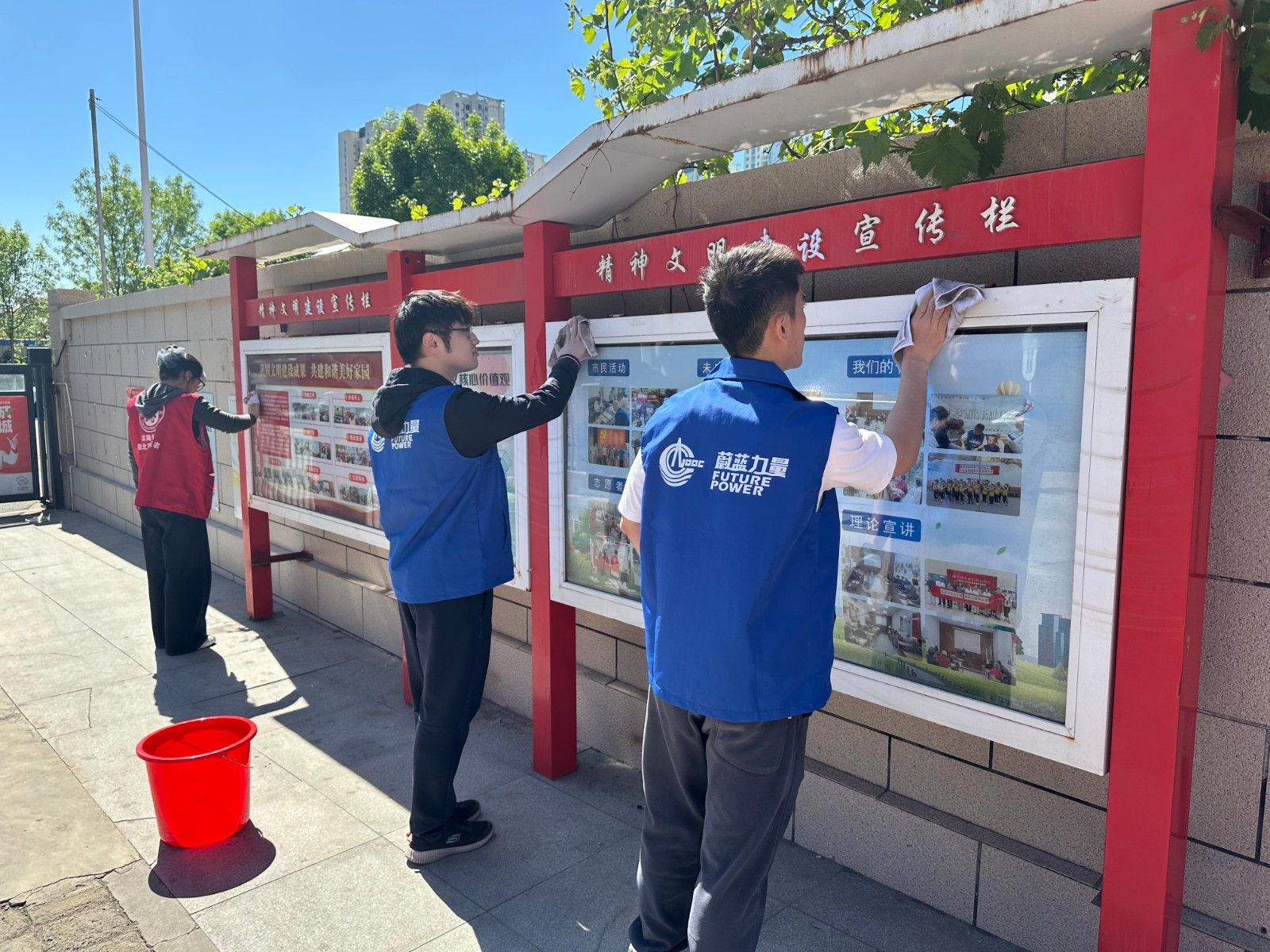 活动当天,青年志愿者们早早来到小区集合。为确保活动高效有序开展,志愿者分成若干小组,每组负责不同的任务区域。捡垃圾小组的志愿者们手持垃圾夹,仔细搜寻小区角落的烟头、纸屑、塑料瓶等垃圾,不放过任何一个卫生死角;除草松土小组手持铲子和锄头,穿梭在绿化带中,清理杂草,为花草树木松土施肥,让绿化区域更加整洁美观;擦拭公共设施宣传栏小组则认真擦拭宣传栏、休闲座椅等公共设施,使其焕然一新。尽管天气炎热,但志愿者们热情高涨,干劲十足,经过两个小时的努力,小区环境得到了显著改善。