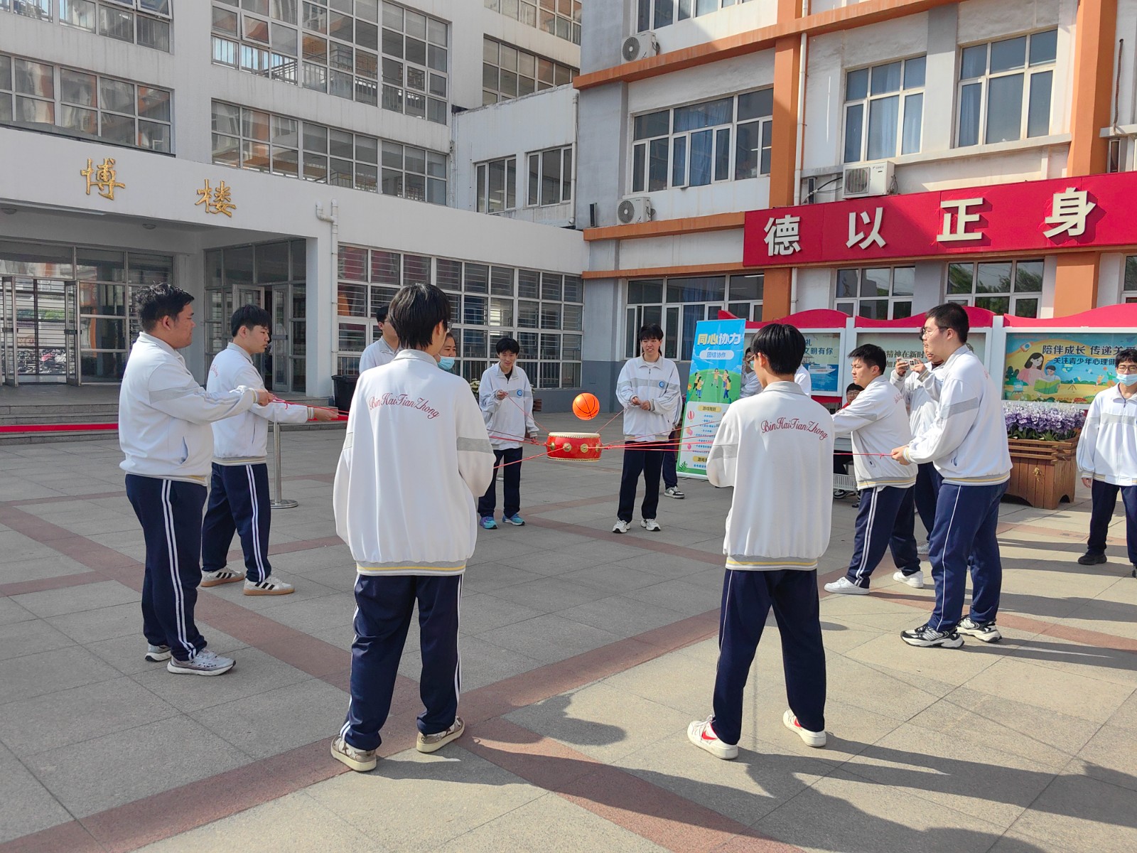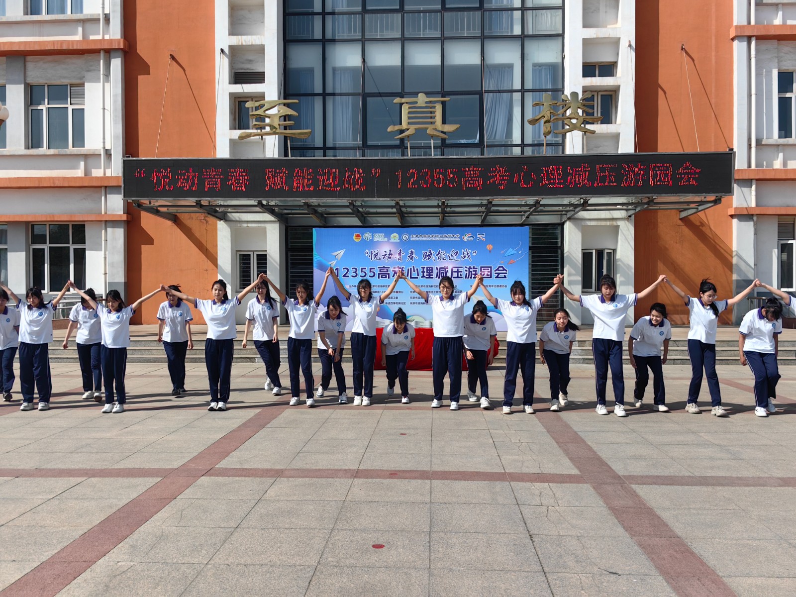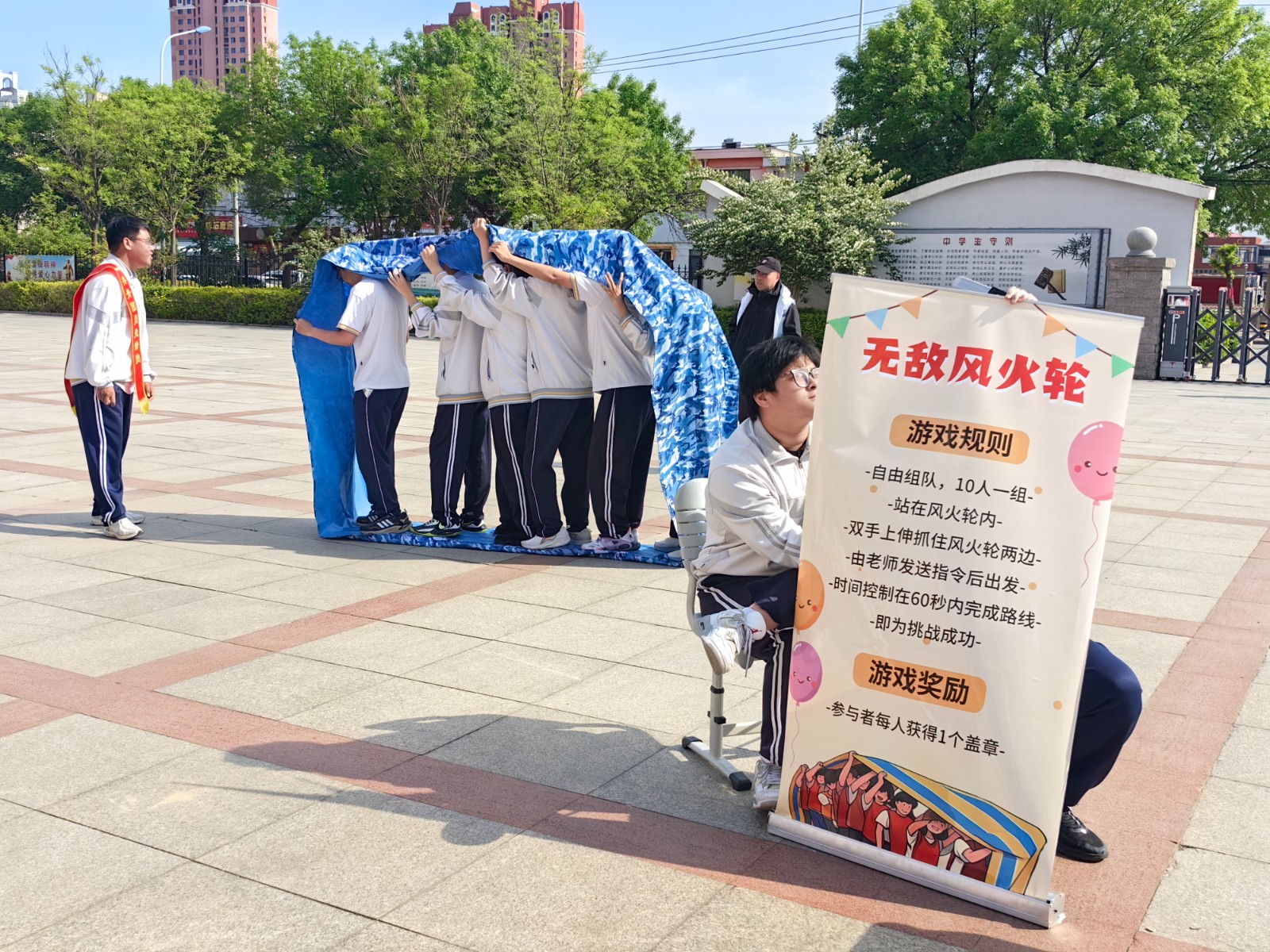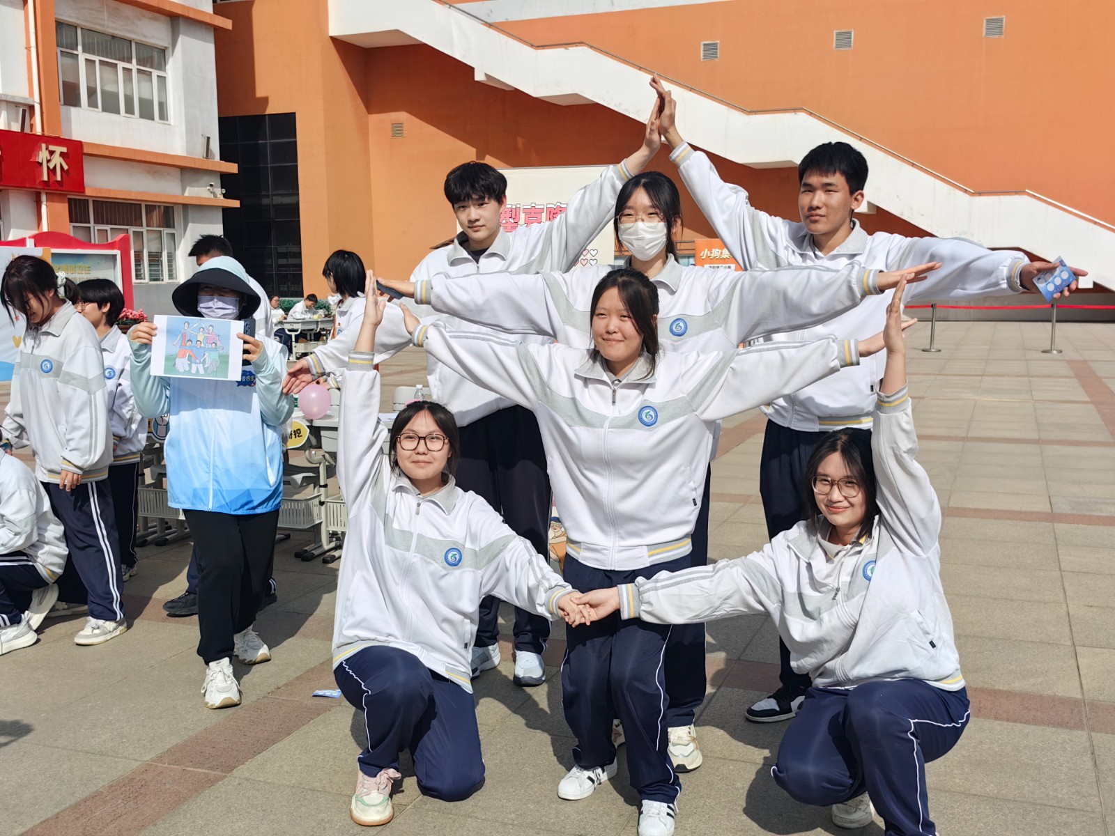 此次游园会精心设置了多个趣味减压小游戏。在“同心协力”环节中,学生们几人一组,相互配合,手挽手、肩并肩,齐心协力冲向终点。大家在彼此的鼓励与支持中,感受到团队的力量,也缓解了个人的紧张情绪;“无敌风火轮”项目中,同学们共同制作“风火轮”履带,一同钻进履带内,喊着整齐的口号向前行进。过程中虽偶有失误,但欢声笑语不断,让大家暂时忘却了学习的压力;“造型克隆秀”充满欢乐与创意,学生们两两一组,一人摆出各种搞怪造型,另一人迅速模仿,滑稽的动作引得围观者捧腹大笑,现场气氛热烈非凡。