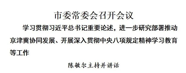 5月14日,市委常委会召开会议,学习贯彻习近平总书记关于京津冀协同发展的重要论述,通报2025年京津冀党政主要领导座谈会精神,审议市委常委会深入贯彻中央八项规定精神学习教育集中整治台账,听取夏季达沃斯论坛筹备工作情况的汇报,研究部署有关工作。市委书记陈敏尔主持会议并讲话。