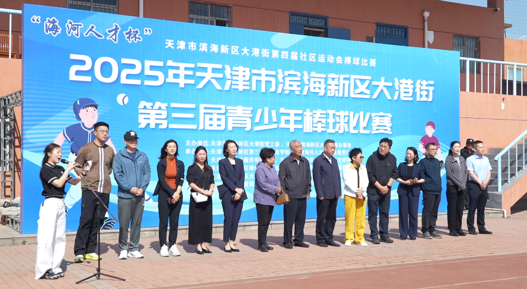 本次赛事由大港街道办事处主办,大港街道综合文化中心、天津市滨海新区棒垒球运动协会、大港街道双安社区、五方里社区、春晖里社区等单位协办。作为天津市青少年棒球运动的重要品牌赛事,大港街道青少年棒球赛自2023年创办以来,已连续三年为津城青少年搭建起展示风采的舞台。本届赛事在规模与专业性上进一步提升,不仅汇聚了市内多支高水平青少年运动队,更联动社区、学校、体育主管部门及专业协会,形成“多方共建”模式。在开幕仪式上,滨海新区教体局相关负责人鼓励青少年们要积极参与户外运动,推广和普及棒球运动,为城市生机增添健康的色彩,为“体育强市”目标注入新活力。并指出,赛事坚持“以球育人”理念,通过竞技锤炼青少年的意志品质,同时为我市棒球项目储备后备力量,助力体育强市建设。 现场还特别邀请了天津市棒球协会的专业教练团队,为小选手们提供技术指导,彰显赛事“以赛促练”的办赛理念。