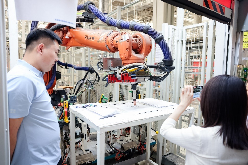 全新探岳L交车仪式成为本次活动的一大焦点。2024年11月,全新探岳L在经开区下线投产。本次活动特别邀请了300名工业旅游客户参观工厂。活动在保留以往开放冲压、焊装、总装车间、物流和质保特色展区的基础上,首次开放了培训大楼与涂装车间。在培训大楼,家属通过实操互动、实景模拟等形式,深入了解公司人才培养体系及生产工艺流程;涂装车间内,自动化喷涂设备与精密工艺流程展现智能制造的前沿成果,家属近距离感受汽车制造的科技魅力。