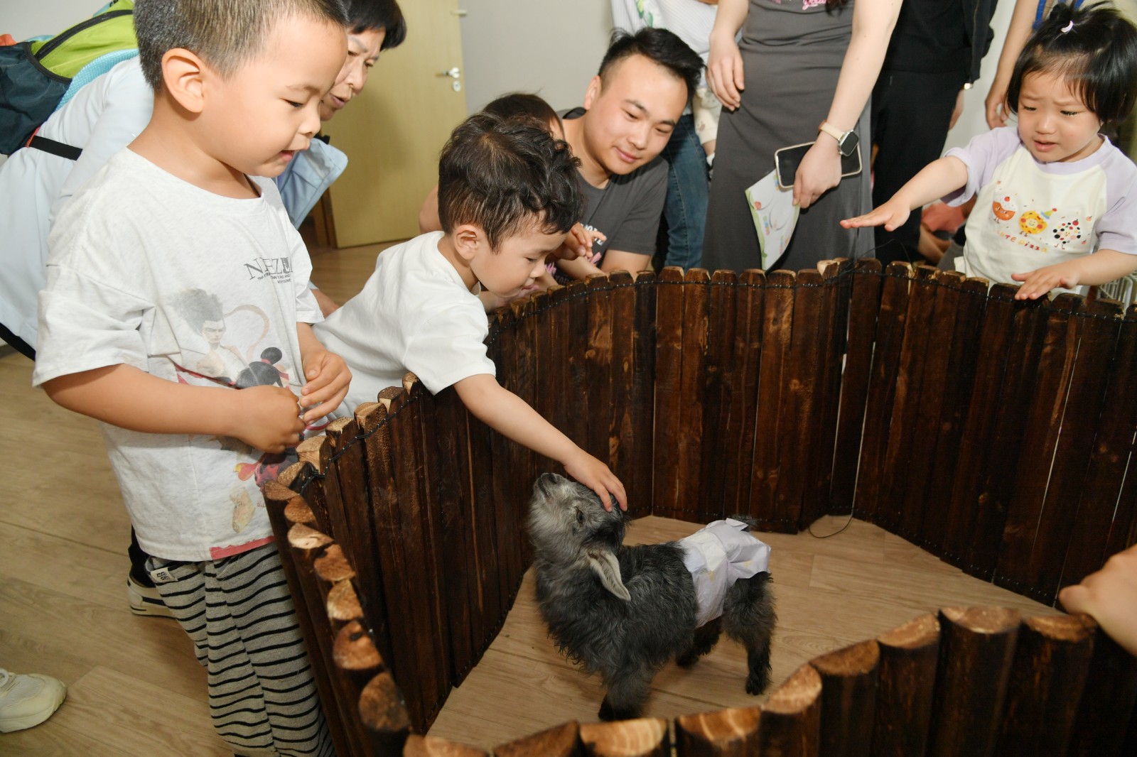 当音乐声响起,大家跟着老师的引导,集体唤醒了正在沉睡中的“小动物”……满满的仪式感和精心设计的开场活动让宝宝们瞬间进入嗨玩状态。在这里,宝宝们化身小小“农夫”,在“鸡窝”里摸鸡蛋,在“养牛场”挤牛奶,在“羊圈”里薅羊毛,在“林地”里采蘑菇,还和刚断奶的小青山羊和小兔子们来了一次亲密接触。宝宝们在“农场”里不停地穿梭“劳作”,在收获中感受生命的力量,感知自然的馈赠。一些家长也不由自主地加入其中,重拾幼年的美好时光。