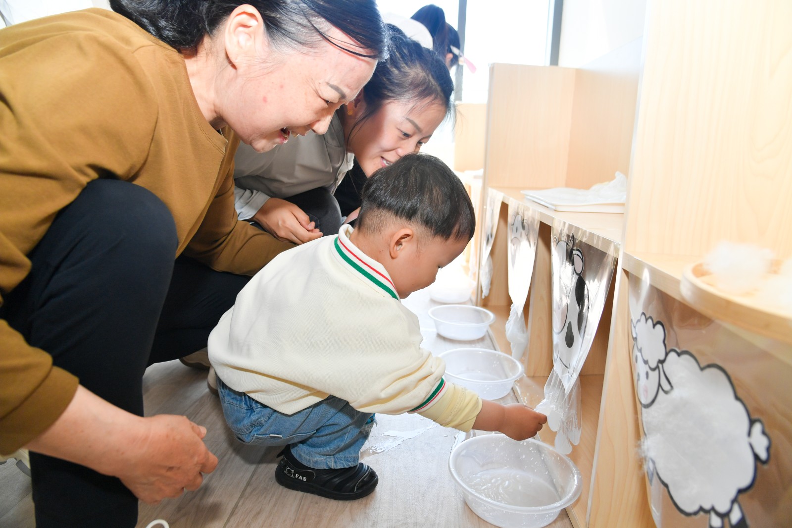 记者注意到,在这场特别体验活动中,第四社区托育服务中心的老师们将科学育儿和快乐带娃深度融合设计,以玩为引,将认知力、观察力、协作力等融入每个游戏环节,用专业视角带领宝宝们感知自然,带领家长解锁藏在玩耍里的成长密码。活动现场,除了宝妈,不少宝爸也积极加入,家庭共育的氛围感十足。“我以前不了解托育,通过今天的体验了解了很多,感觉挺锻炼孩子的,孩子也比较喜欢,感觉非常棒!”家长孟先生告诉记者,宝宝今年1岁半,平时自己工作忙,陪伴孩子的时间不多,他对第四社区托育服务中心的环境设施都很满意,还在现场领取了托育中心的有关资料,下一步会考虑选择托育。