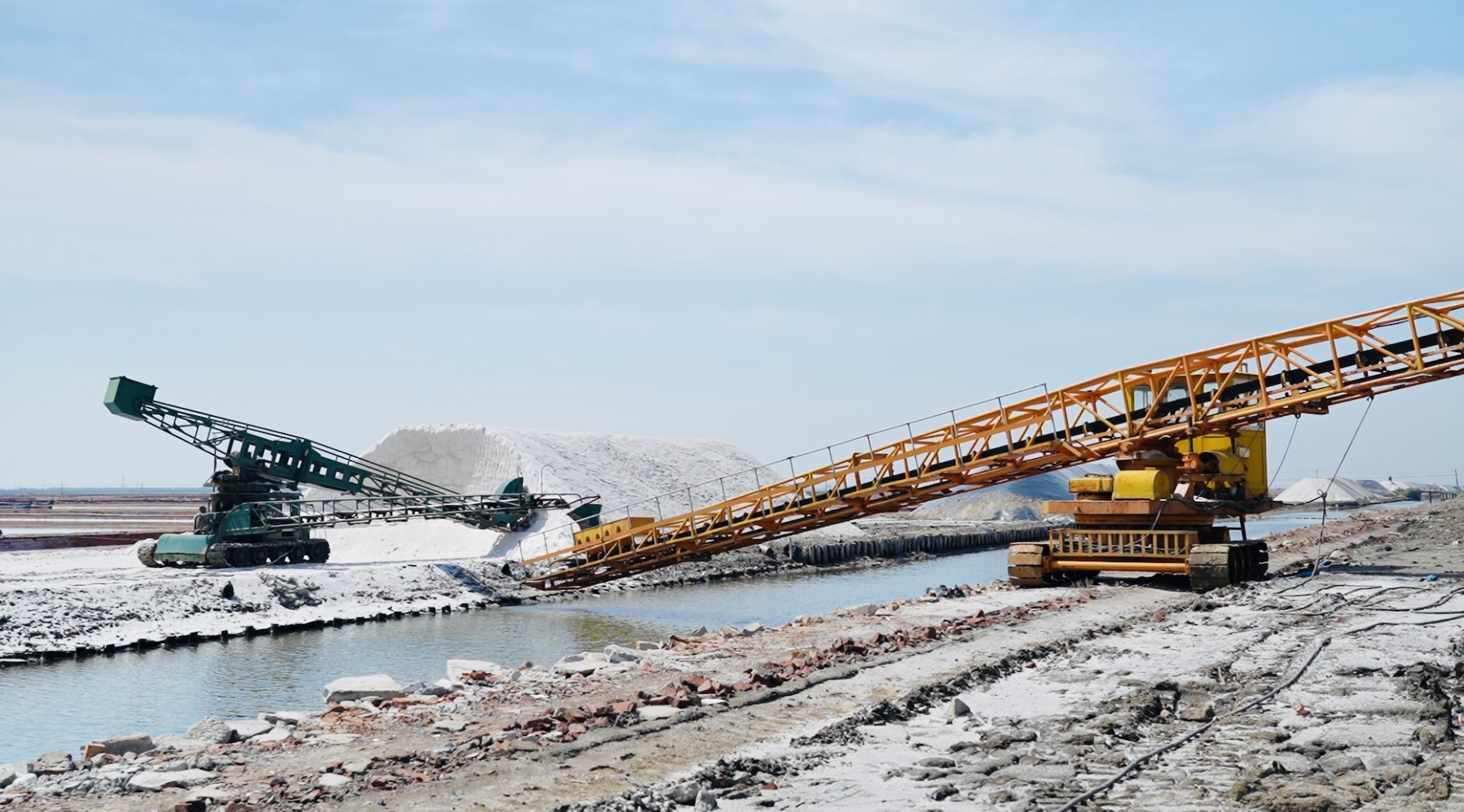 津滨网讯(记者 李婷婷 报道 刘汯林 周明健 摄影)又到一年收盐季,原盐收获正当时。连日来,位于天津长芦海晶集团滨海第一分公司的万亩原盐生产基地迎来丰收季,春茬原盐开始采收。阳光下,纵横排列的盐池犹如色彩斑斓的调色板,盐场各大片区组织机械、人力齐上阵,加快原盐采收进度。