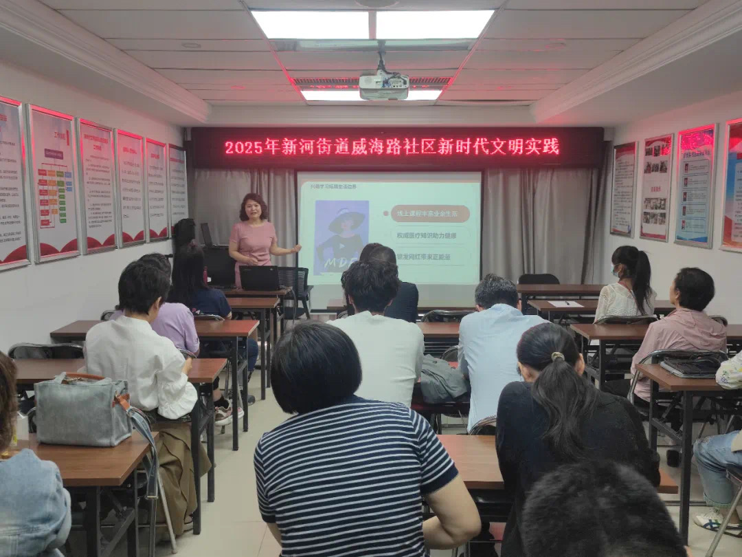 针对社区老年群体需求,活动当天,天津滨海职业学院商贸物流学院电子商务专业教师刘秀芹现场为居民们开展《直播的双面镜:智慧生活与风险防范》专题讲座。课程设置主要分为技术赋能、风险识别、实战演练三大特色模块。活动现场互动频繁,社区居民张大爷在体验后表示,“课程既教会手机下单窍门,更提醒要注意群聊链接风险。”据统计,参与居民当场识别网络套路的准确率较培训前提升40%。