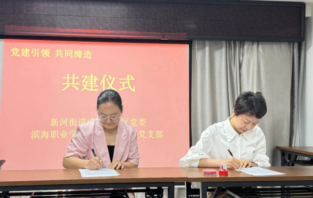 在双方党员代表见证下,天津滨海职业学院商贸物流学院党支部书记与威海路社区党委书记共同签署共建协议,明确将在党员教育、志愿服务等领域深化合作,并以“红船精神”为引领,旨在探索职业教育服务基层治理的创新路径。
