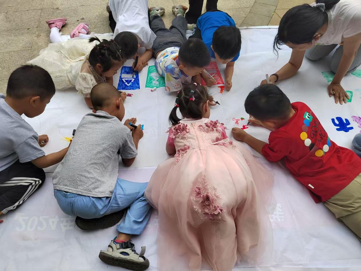 同时,春阳社区还开展了“创意涂鸦 文明同行”活动,为孩子们带来了一场“涂鸦盛宴”。活动以“文明城市”和“节约粮食”为主题,孩子们拿起画笔大胆创作,不一会儿,洁白的画布上画满了色彩鲜艳、充满童趣的图画。