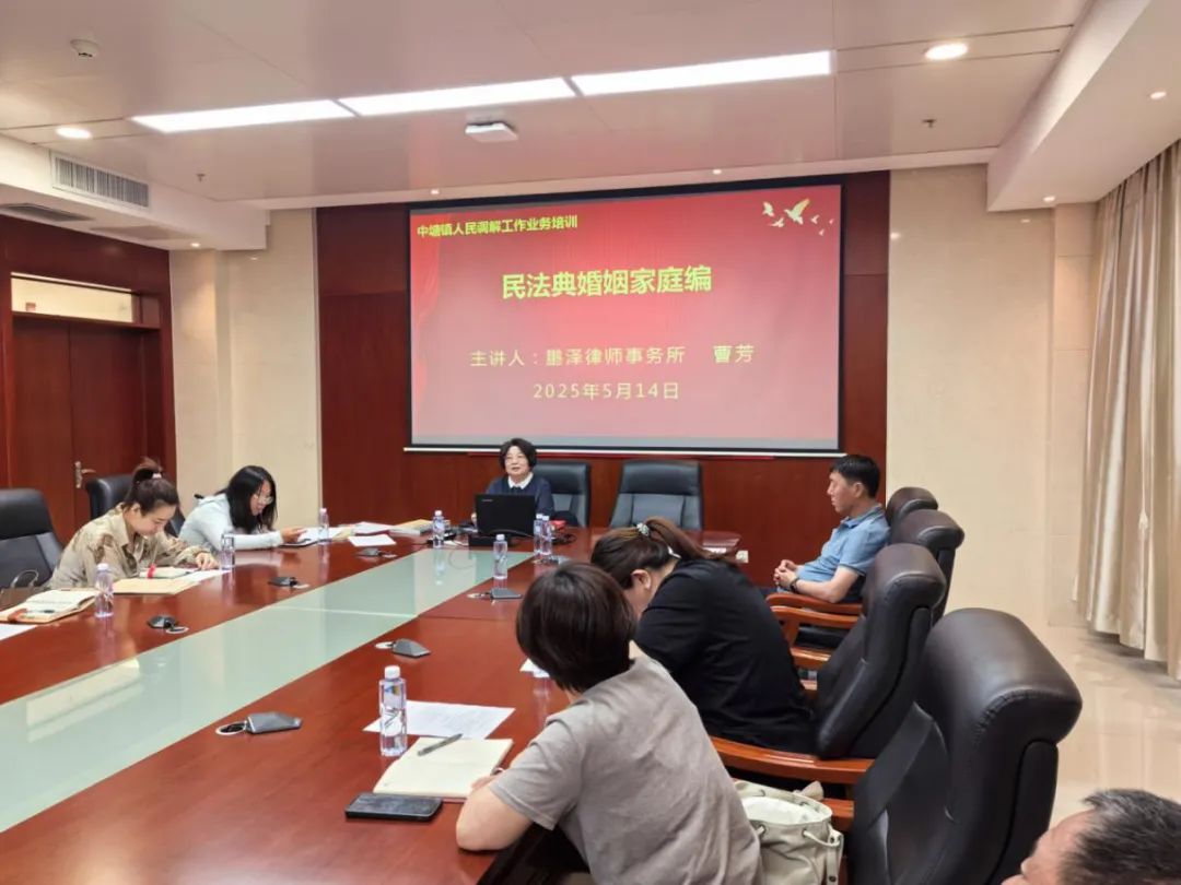 随后,鹏泽律师事务所律师曹芳对民法典婚姻家庭编司法解释(二)展开深入解读。曹芳结合司法实践中的鲜活案例,重点针对民法典婚姻家庭编司法解释(二)实施后家庭财产关系出现的新变化,包括新型财产形式的分割、房屋加名的归属等,进行了全面且细致的讲解,帮助调解员们及时更新知识体系,掌握最新法律适用要点。中塘司法所工作人员就人民调解规范化建设、人民调解日常工作要求、平台录入、调解卷宗填写规范等内容进行工作提示。