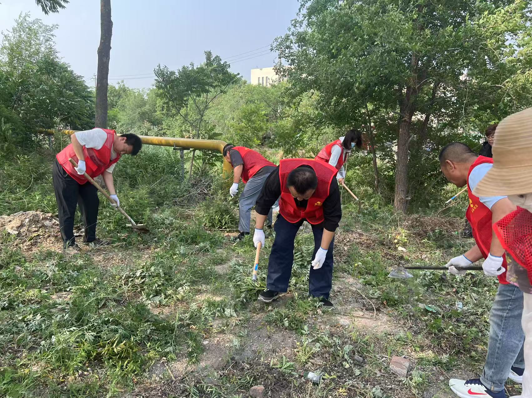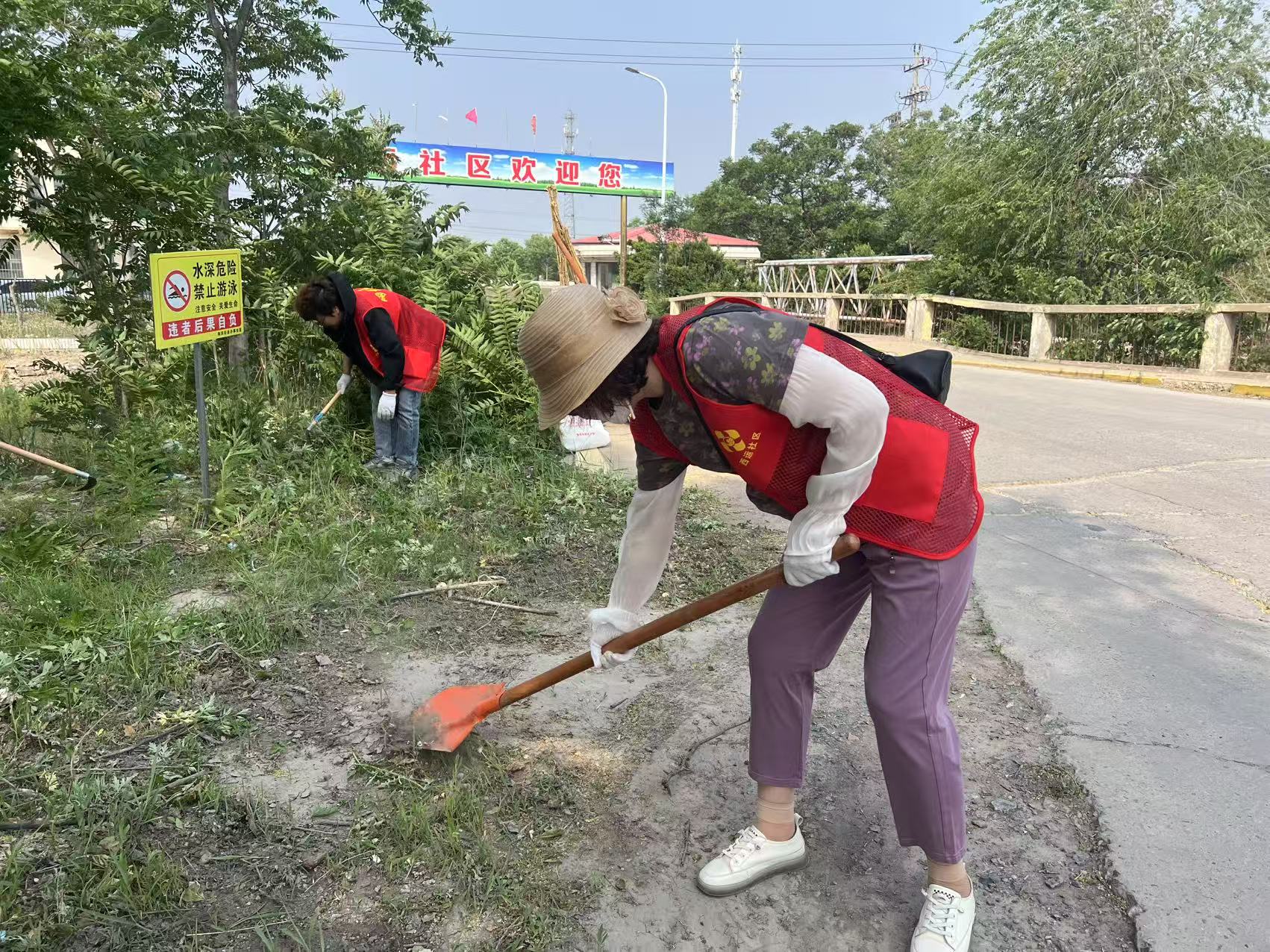 活动现场,志愿者们拿着铁锹、垃圾袋、扒犁等清理工具清理着社区大门口两侧的杂草和垃圾。别看师傅们都有了花白的头发,但依然发扬不怕累、不怕脏的精神,对各个角落的杂草和垃圾都认真进行清理,用汗水和热情诠释着奉献友爱的精神,经过大家的努力,社区大门口重现了“靓丽容颜”。