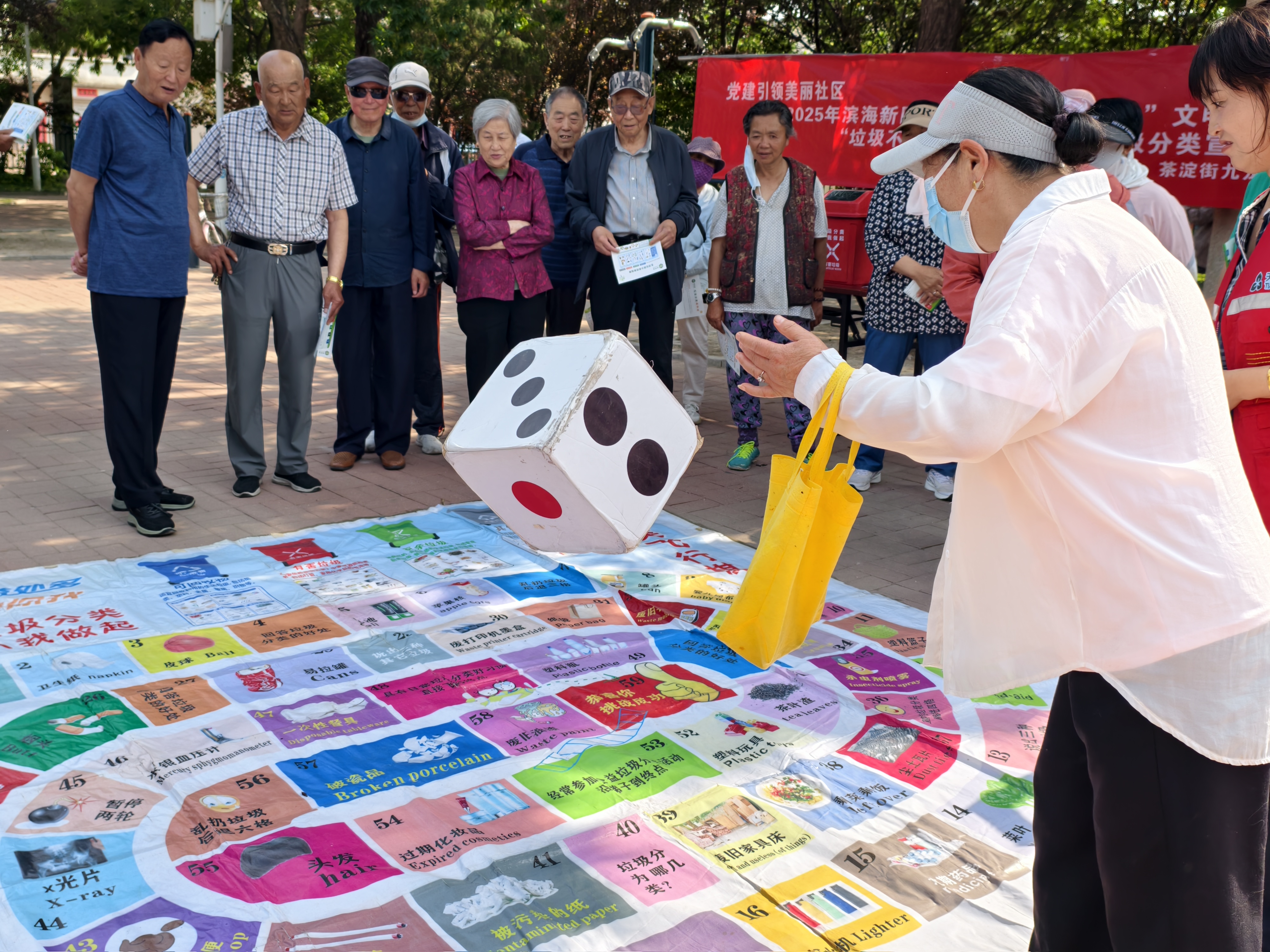 活动还特别设置了垃圾分类飞行棋游戏环节,将垃圾分类知识融入趣味游戏中。棋盘上布满了各种垃圾分类小任务和挑战,居民们通过投掷骰子,按照规则在棋盘上前进,并回答对应的垃圾分类问题。答对的居民可以获得小礼品作为奖励,答错的居民则会得到督导员的现场指导和讲解。游戏现场气氛热烈,欢声笑语不断,居民们在轻松愉快的氛围中巩固了刚刚学到的垃圾分类知识。