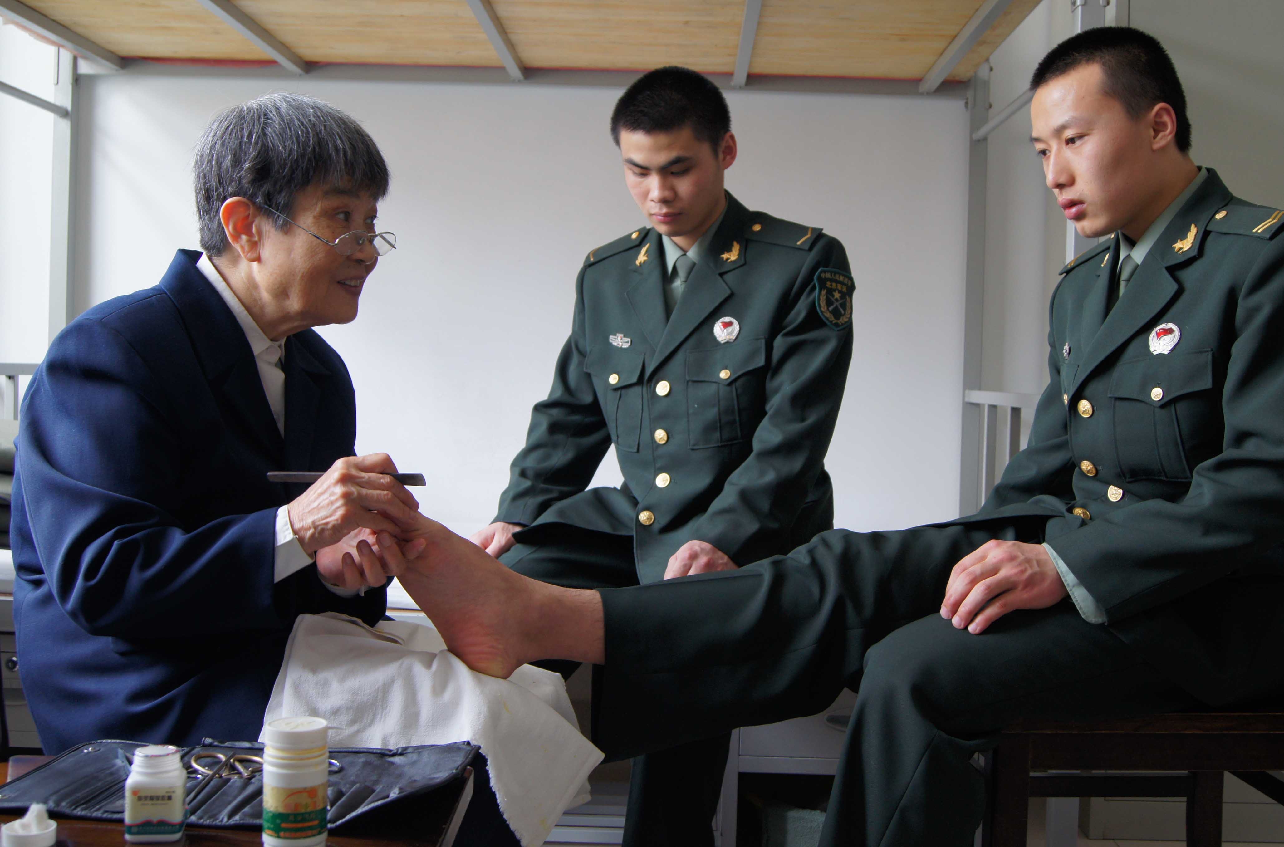 除了美食关怀,赵燕更用专业技能守护战士健康。在担任计生干部时,她自学修脚技术,退休后将这门手艺带到军营。战士们高强度训练导致脚垫、甲沟炎频发,她从不嫌脏怕累,仔细为战士治疗。战士邱红岩因厚茧行动不便,她坚持每月上门;小张的脚癣在她的照料下一周痊愈。三十年来,无数双“兵儿子”的脚在她怀中重获轻松,而她的工具箱里,那把修脚刀早已磨得发亮。