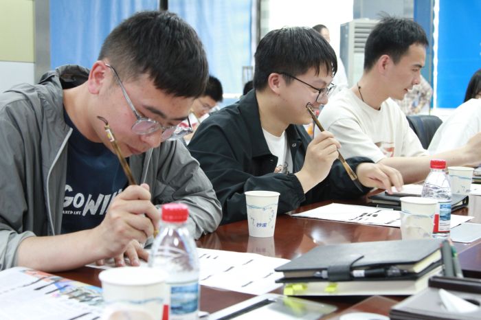 在国学文化体验环节,青年们沉浸式观看了国学经典视频,深邃的智慧与千年的文明在光影流转间娓娓道来。随后,青年们纷纷拿起毛笔,一笔一划练习书法。墨香在空气中弥漫,宣纸之上,或苍劲有力,或飘逸灵动的字迹,让大家切身感受到传统书法的独特韵味与深厚魅力。活动临近尾声,青年们依旧热情高涨,围坐在一起畅谈读书心得与活动感悟,整个空间洋溢着笔墨书香与青春活力交织的浓郁氛围。