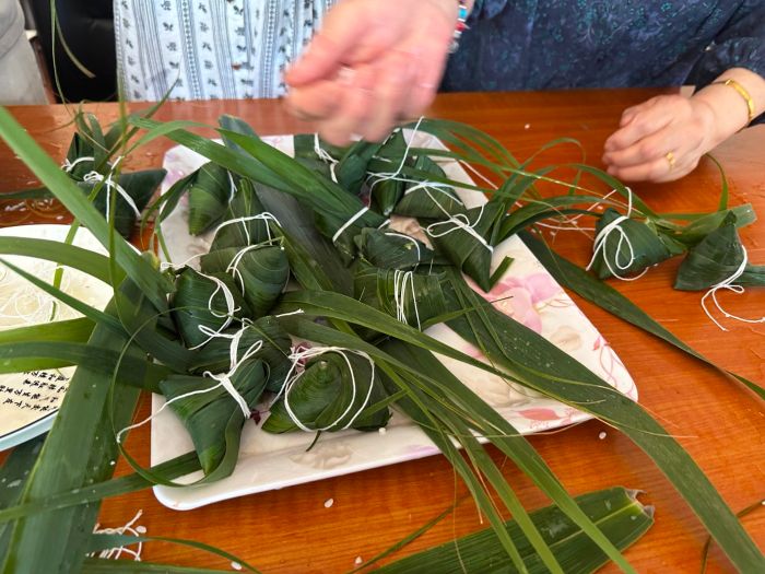 活动结束后,社区工作人员带着刚煮好的粽子走访辖区失独老人。工作人员小刘递上粽子,说道:“陈奶奶,粽子还热乎着呢!”接着,他为独居老人系上五彩绳。老人捧着粽子,眼眶泛红,感动地说:“社区年年都记得我。”