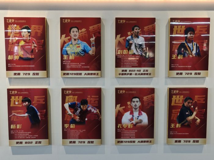 目前,以“729”品牌为龙头的乒乓器材包括有套胶、底板、球拍、乒乓球、球台、发球机和地胶等7大系列数百个规格,做到了产品乒乓行业全覆盖。同时,近几年将品牌延伸到其它体育器材领域,开发了羽毛球、足篮排、运动护具等系列产品,凭借雄厚的技术实力、高素质的专业人才和强大的产品市场认知度在社会上树立起了良好的企业形象和品牌知名度,受到了社会各界人士的普遍信赖与赞扬,逐步将729由单一乒乓制造商打造成为体育产业集团。