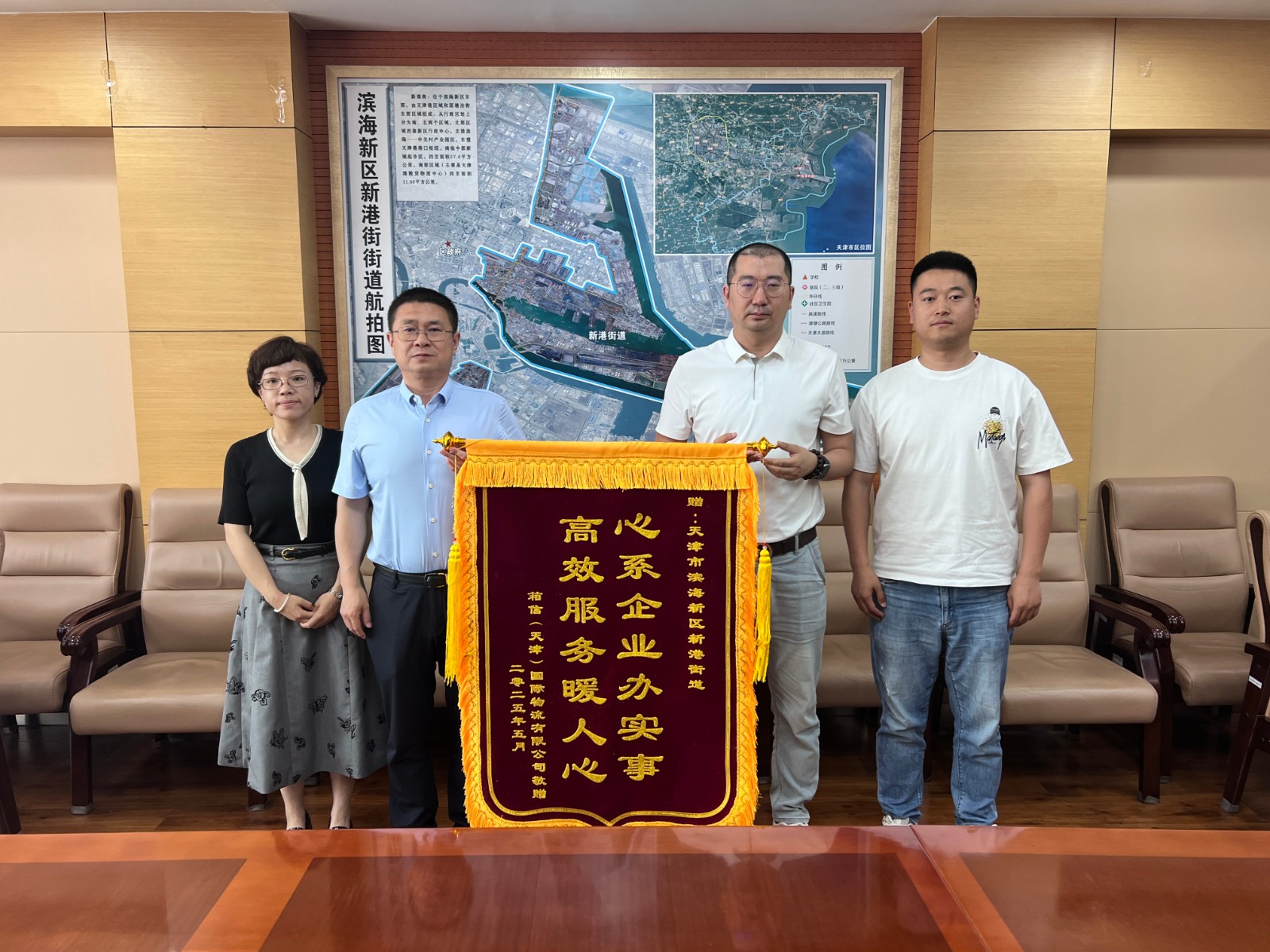 津滨网讯(记者 田敏 通讯员 王美翕 摄影报道)近日,箱信(天津)国际物流有限公司将一面印有“心系企业办实事,高效服务暖人心”的锦旗送至新港街道,这面锦旗不仅承载着企业对新港街道优质服务的诚挚谢意,更彰显了政府与企业之间紧密相连,为企业精准服务解难题,让企业落户零障碍。