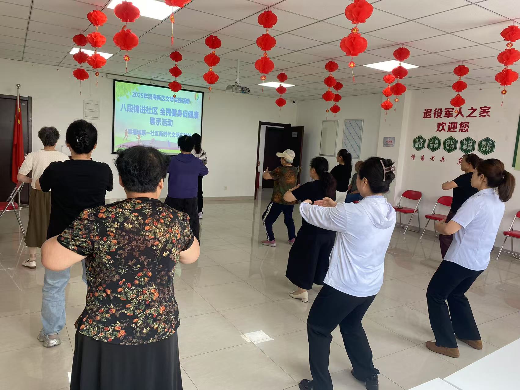 津滨网讯(记者 张玮 摄影报道)日前,北塘街道幸福城第一社区开展八段锦健身活动,活动在加强辖区居民体育锻炼的同时,也普及了优秀的传统文化。