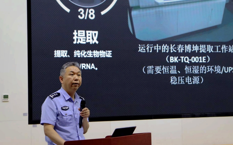 讲座伊始,王玉建警官以《法医 DNA 实验室工作简介》为题,为同学们揭开了刑侦科学的神秘面纱。他详细展示了法医 DNA 实验室如何从血迹、唾液等微量生物检材中提取关键证据,并深入解析了 DNA 分型、数据比对以及构建基因数据库的全流程。这一过程让同学们惊叹不已,他们惊讶地发现,平日里在课堂上学到的生物遗传学知识,竟在现实生活中发挥着如此关键的作用。破案不再是警匪片里单纯的追逐与对抗,更是实验室里无数次精密计算与严谨分析的智慧较量,同学们也因此对生物遗传学知识有了全新的认识和理解。